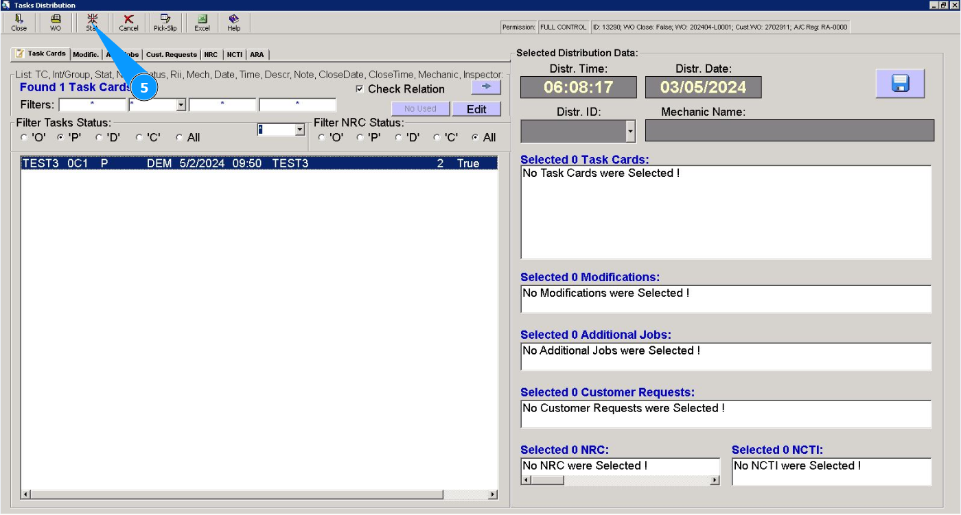 1. In order to change the status of a task (modification, additional work, request from the Customer, Non-Routine Card, Non-Completed Task Item, named in the text of this instructions: “other”) created for WP", go to the submodule "WP Distribution".
