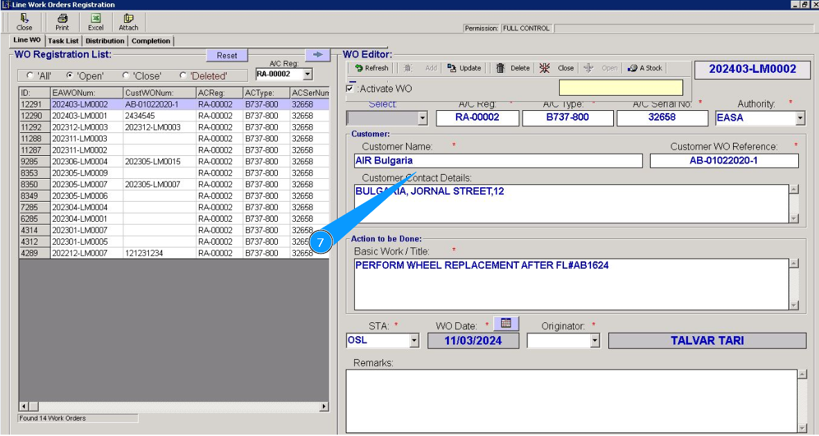 7. Make sure that the data of the required WO is displayed in the editor "WO Editor".
