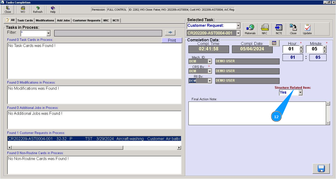 12. If necessary, select "Yes" from the dropdown list, if this customer reques is related to structural repair in the field "Structure Related Item".