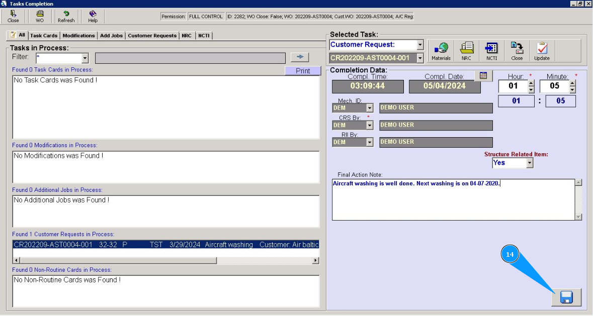 14. Click on the button with a floppy disk symbol to save the completed NRC to the program.
