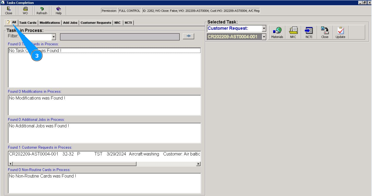 3. Then go to the tab "All". Note: If necessary, it is possible to mark the completion in the tab: "Customer Request".
