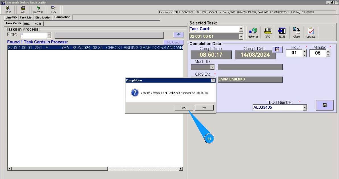 14. Click on the button "Yes", to confirm that you have completed this task.