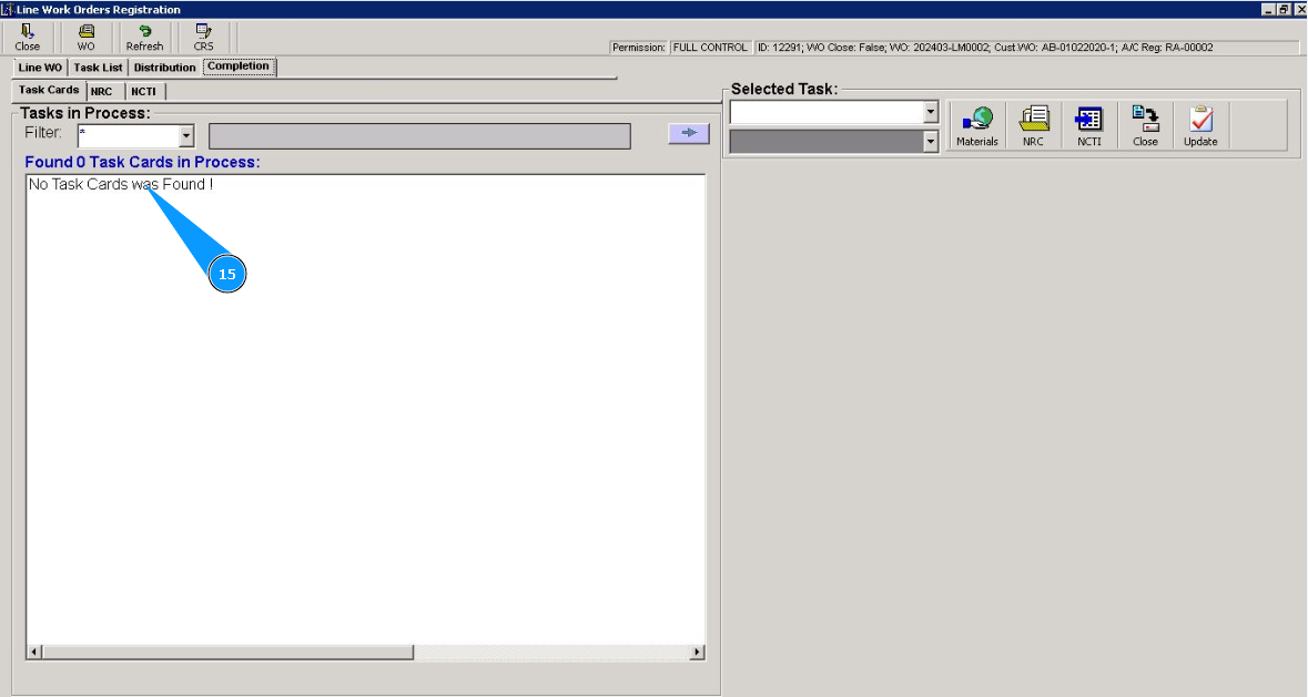 15. Check that the required task has disappeared from the list in the window "Tasks in process".