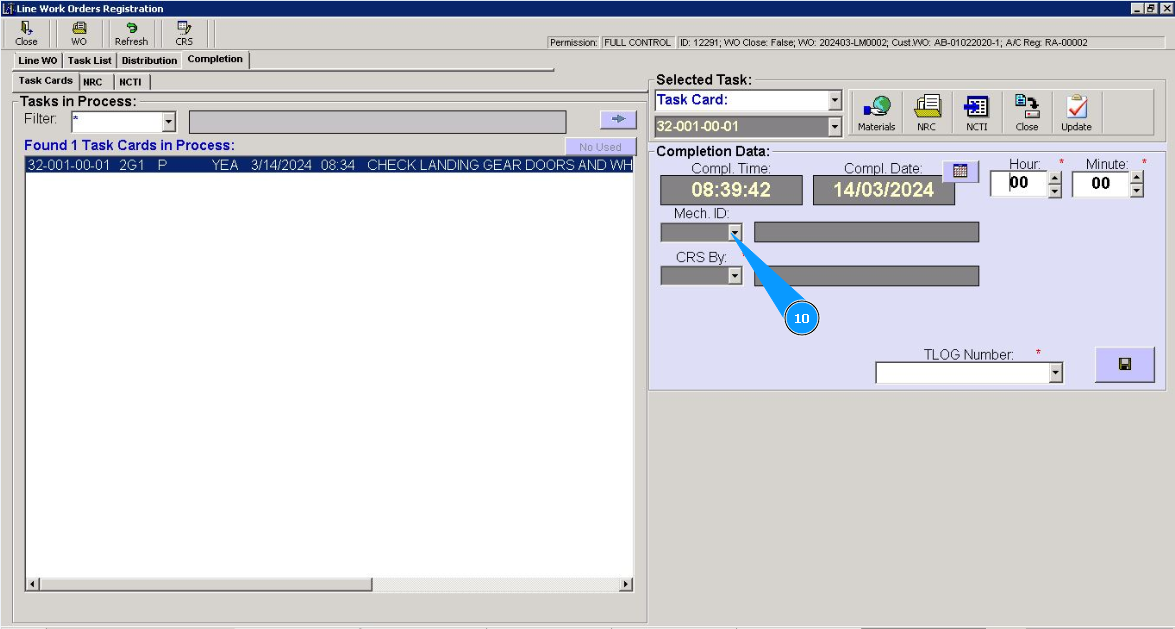 10. Select from dropdown list ID of staff who have performed this task in the field "Mech.ID".