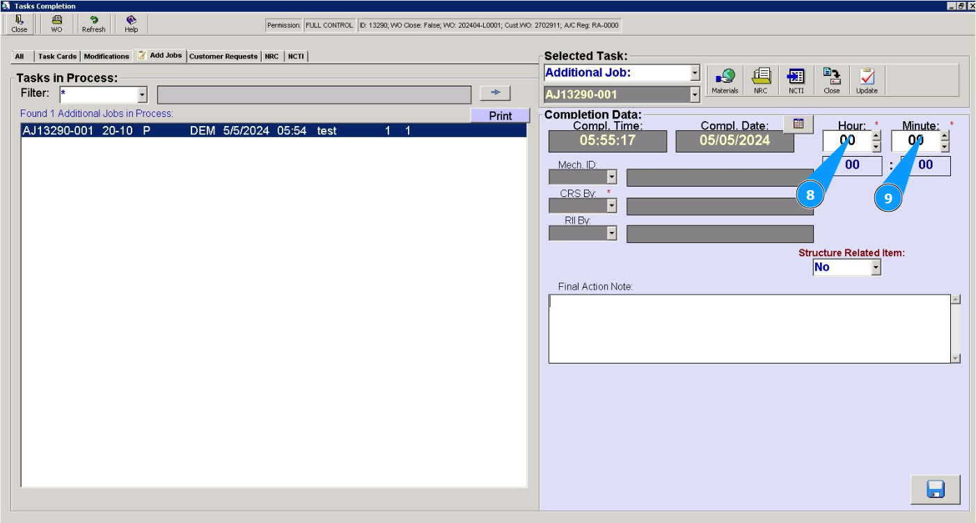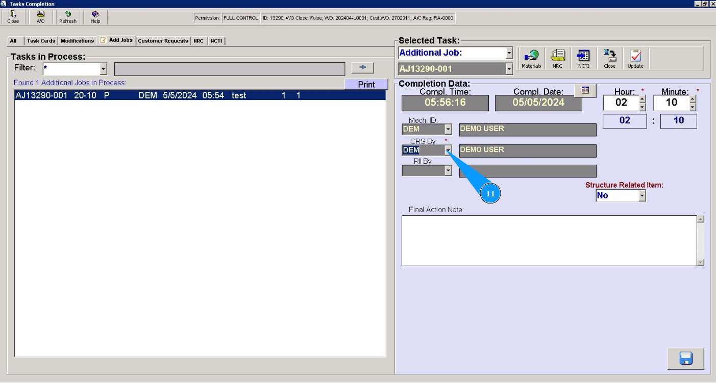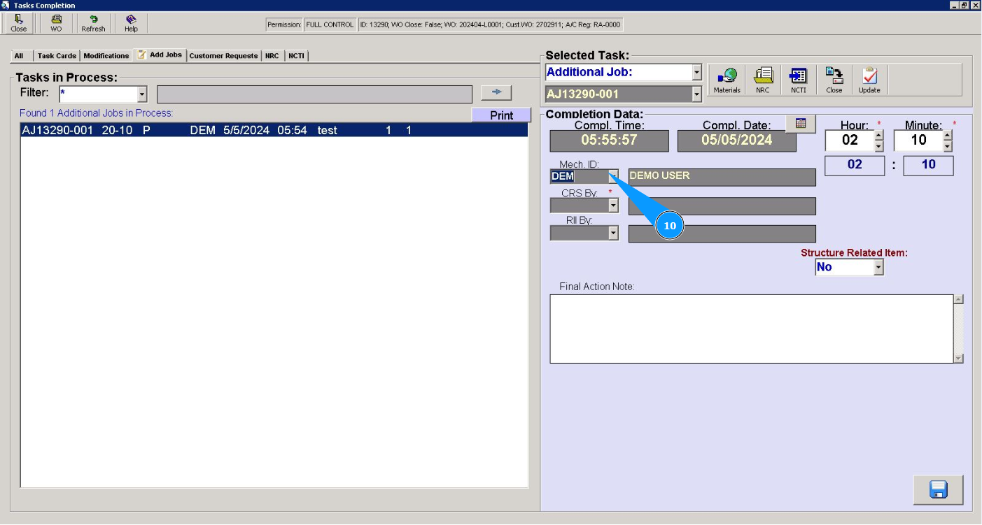 10. Select from dropdown list ID of staff who have performed this additional job in the field "Mech.ID".