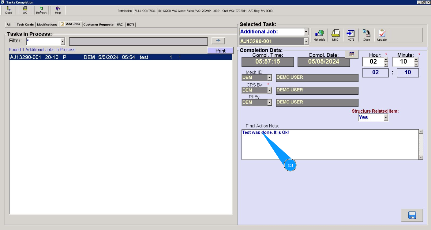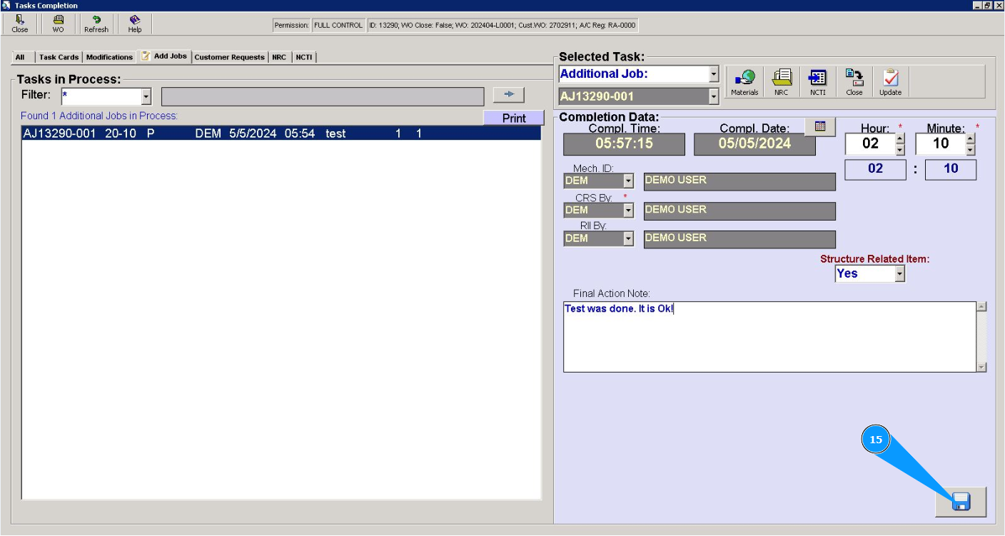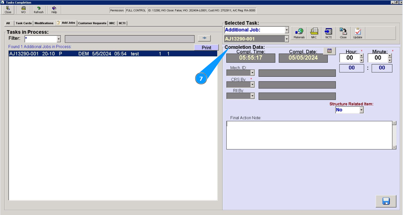 10. Select from dropdown list ID of staff who have performed this additional job in the field "Mech.ID".