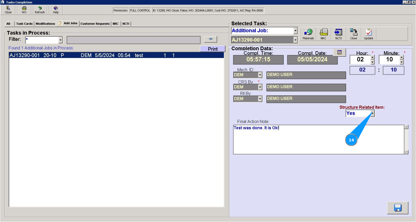 14. If necessary, select "Yes" from the dropdown list if the additional work involves structural repairs in the field "Structure Related Item".