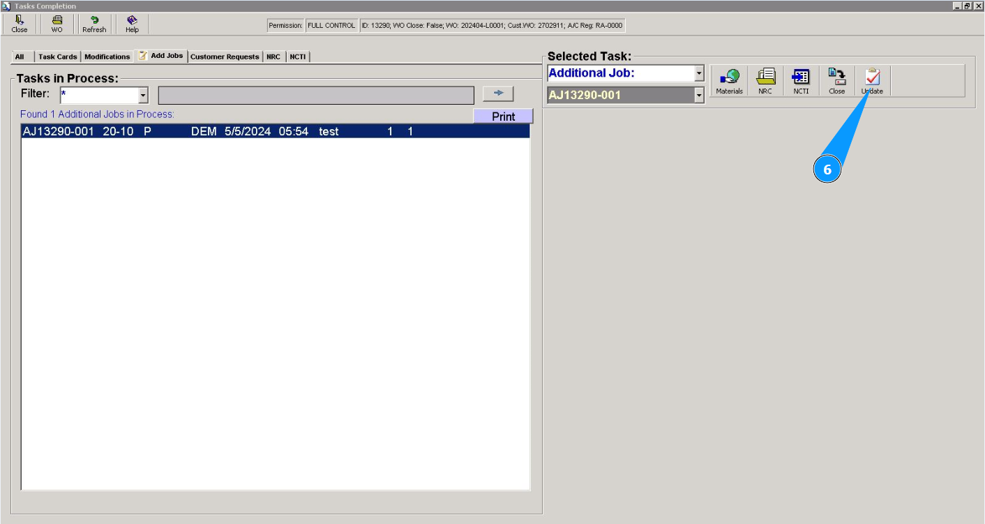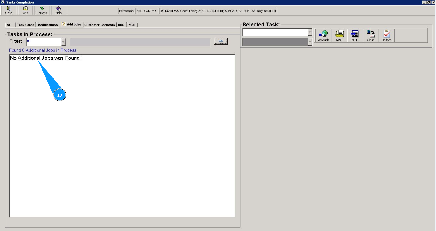 17. Check that the required additional job has disappeared from the list in the window "Addional Jobs in proccess".