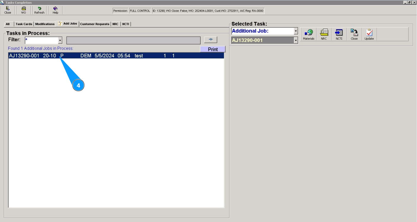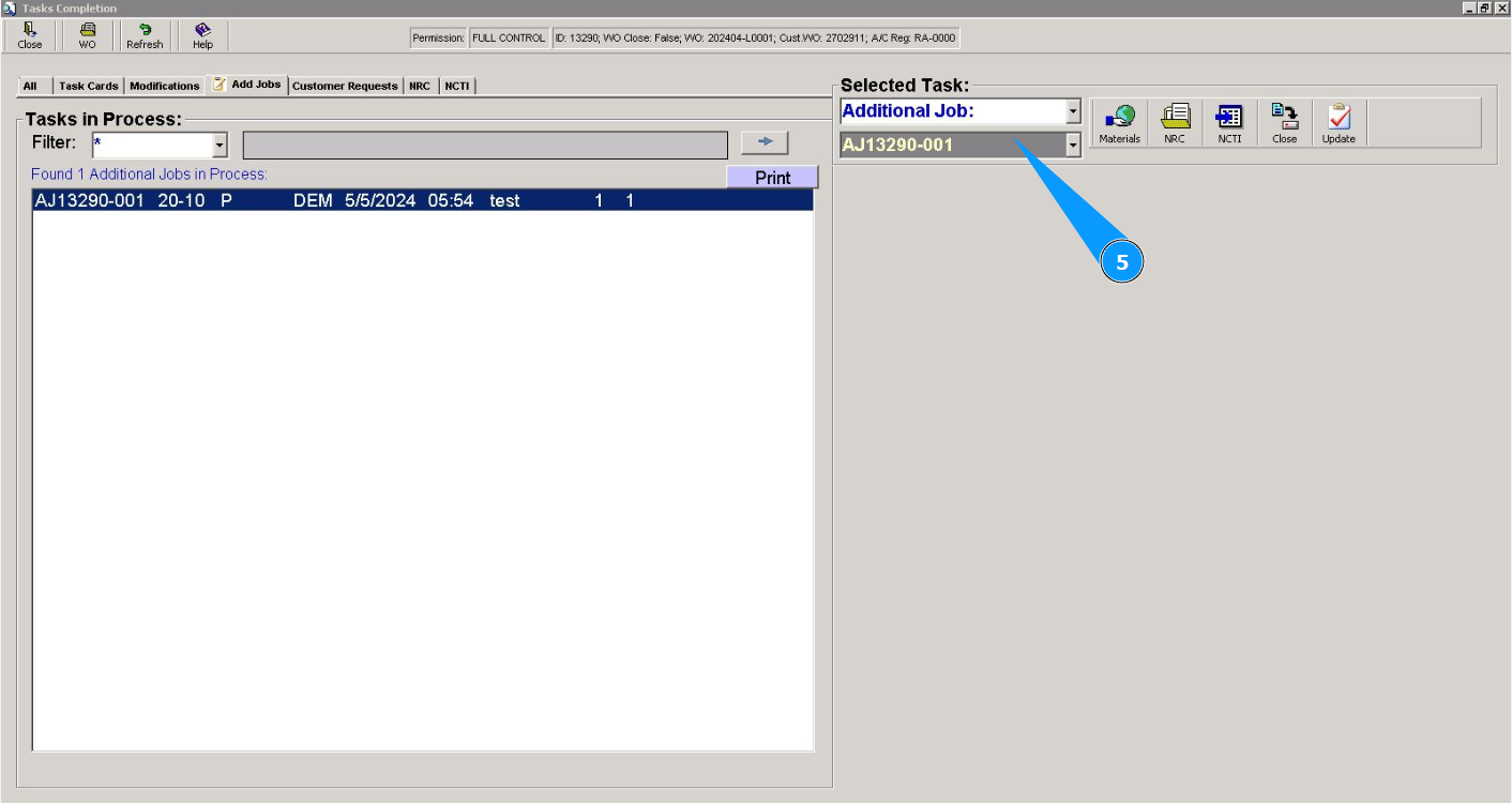 5. Check that the additional job number is displayed in the field "Selected Tasks".