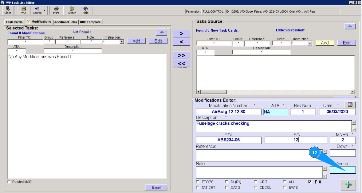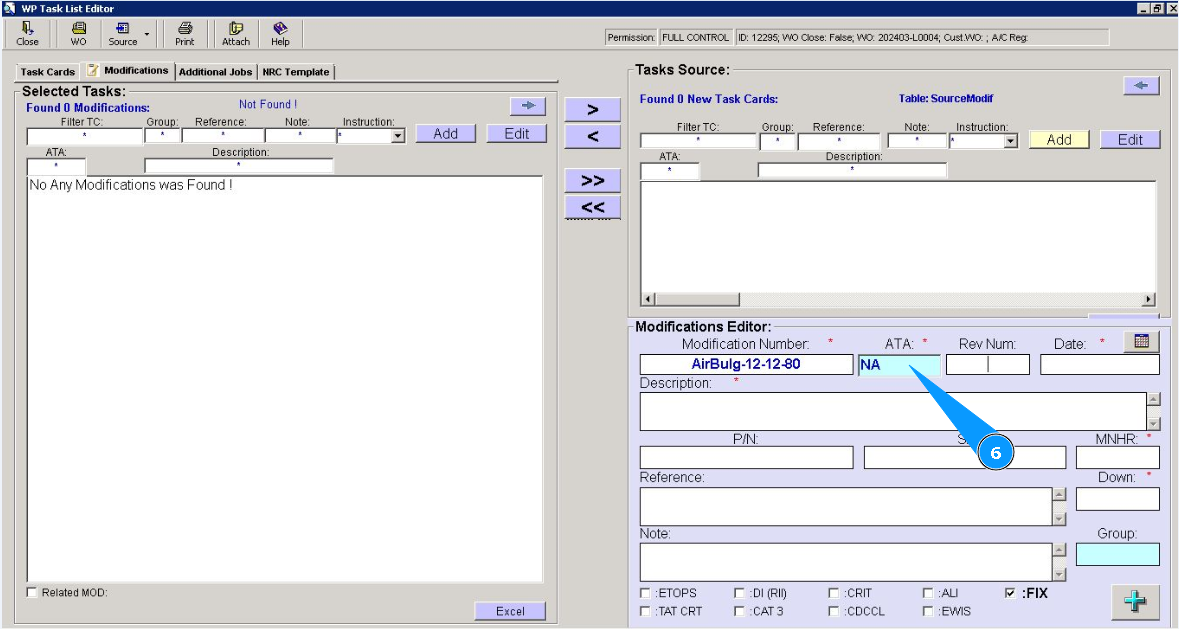 6. To select a work type group, click in the field "ATA". Select the required work type group, from the dropdown list, click on the corresponding line.