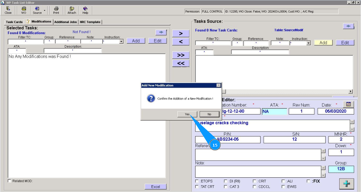 15. Click on the button **"Yes" to confirm that you want to add a new task to the program.