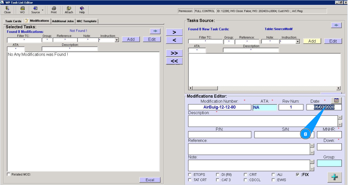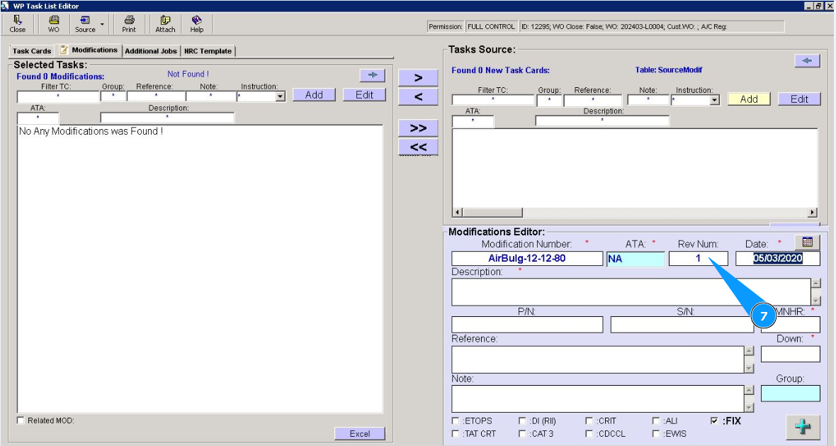 7. If necessary, enter the revision number of the modification in the field "Rev.Num".