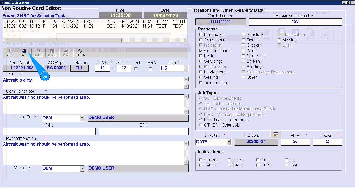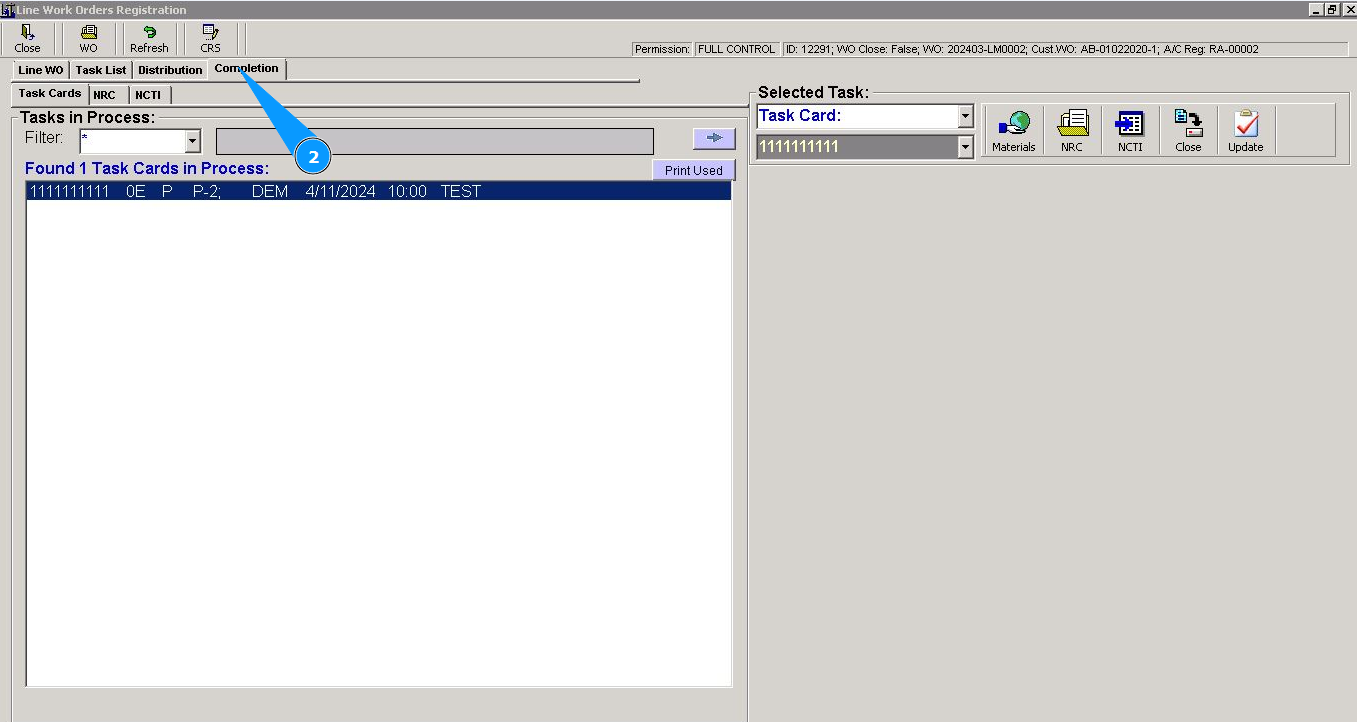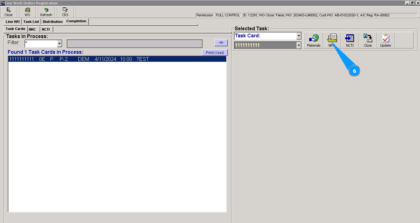 22. Check that new NRC record is displayed in the window "NRC for Selected Task".
