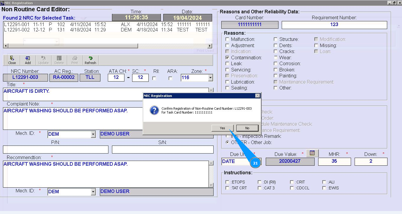 21. Click on the button "Yes", to confirm adding new NRC to program.