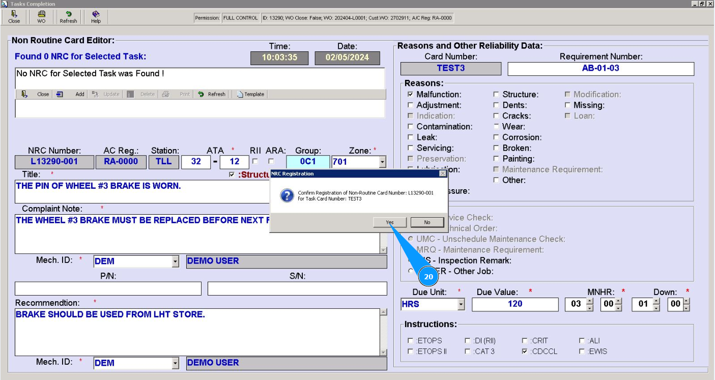 20. Click on the button "Yes", to confirm adding new NRC to program.