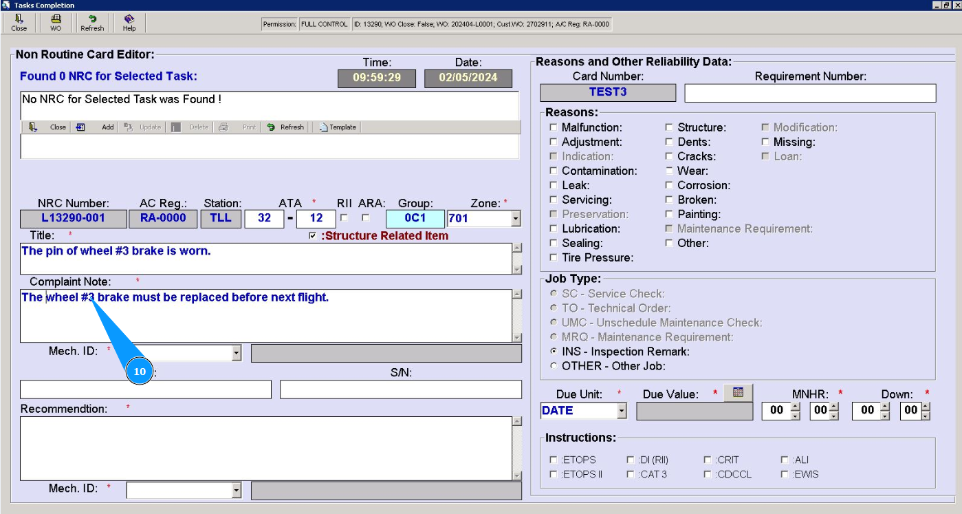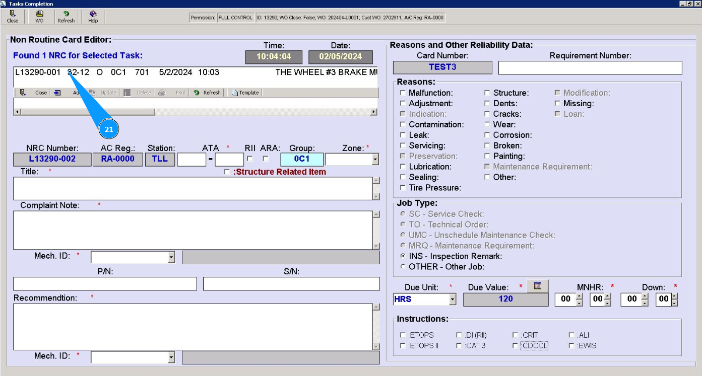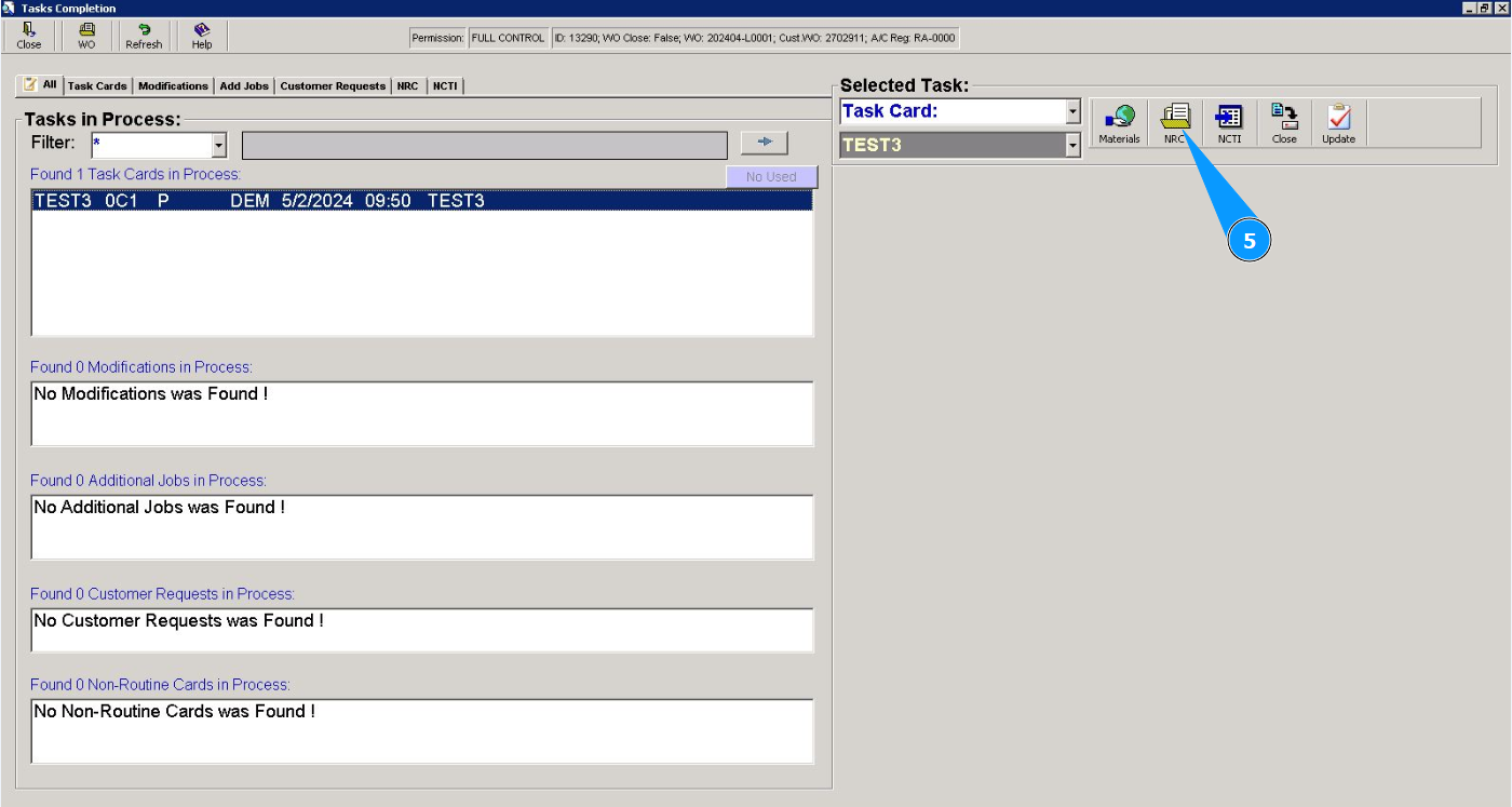 21. Check that new NRC record is displayed in the window "NRC for Selected Task".