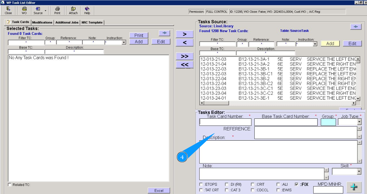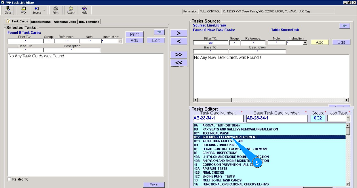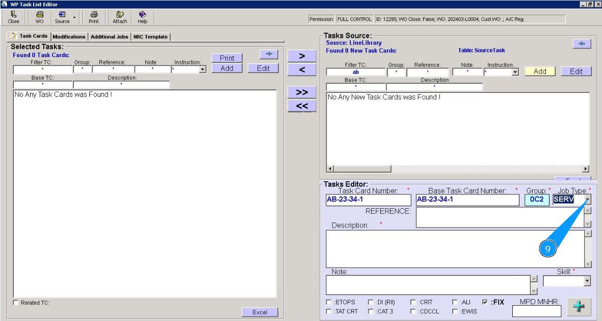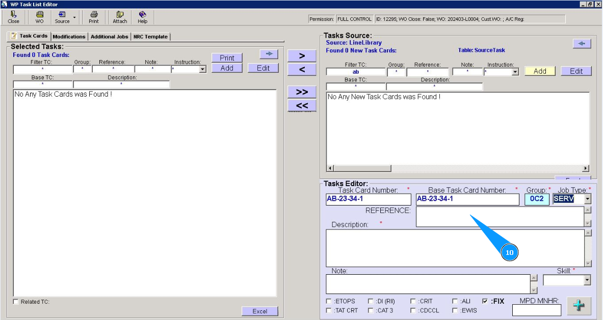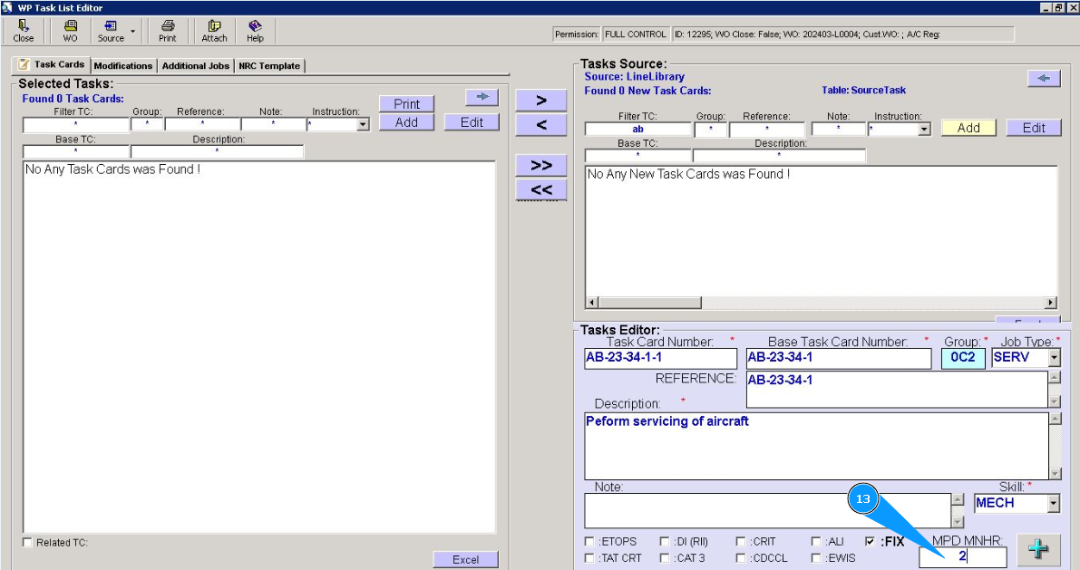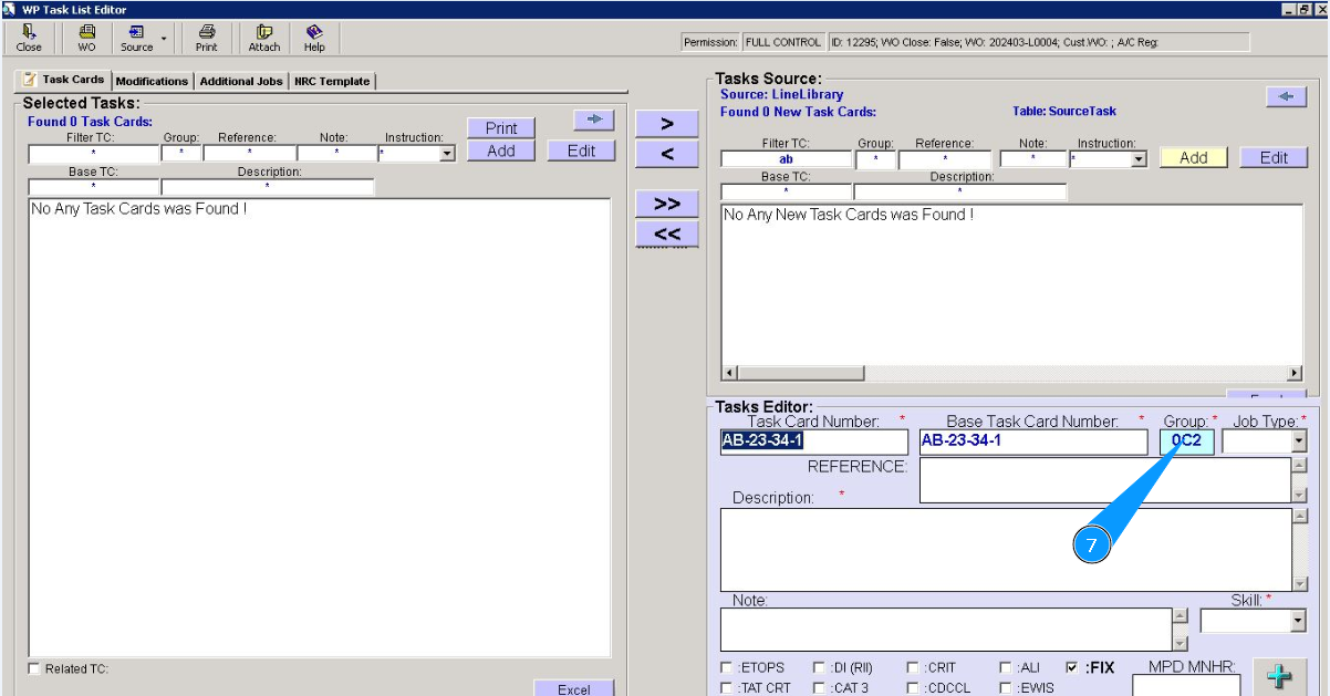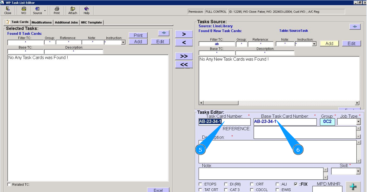 6. Enter the base task card number in the field "Base Task Card Number".