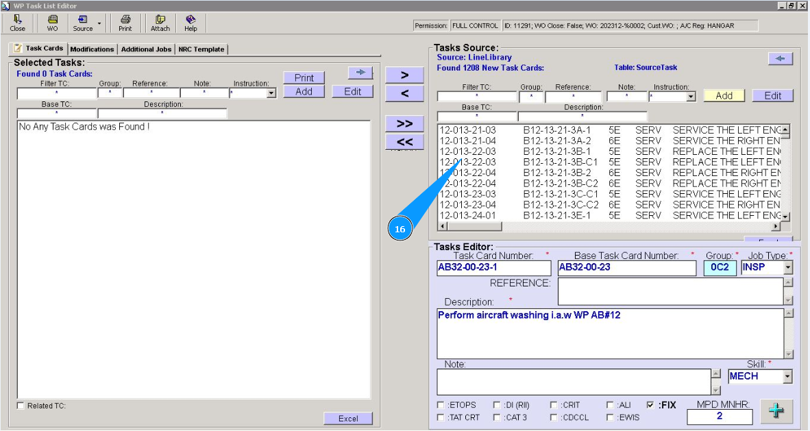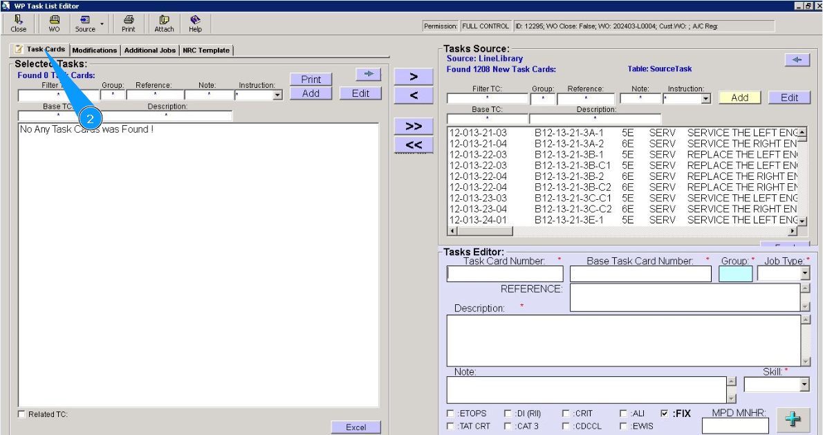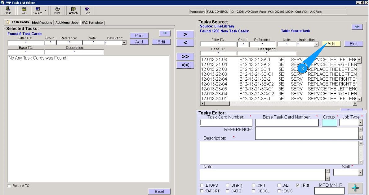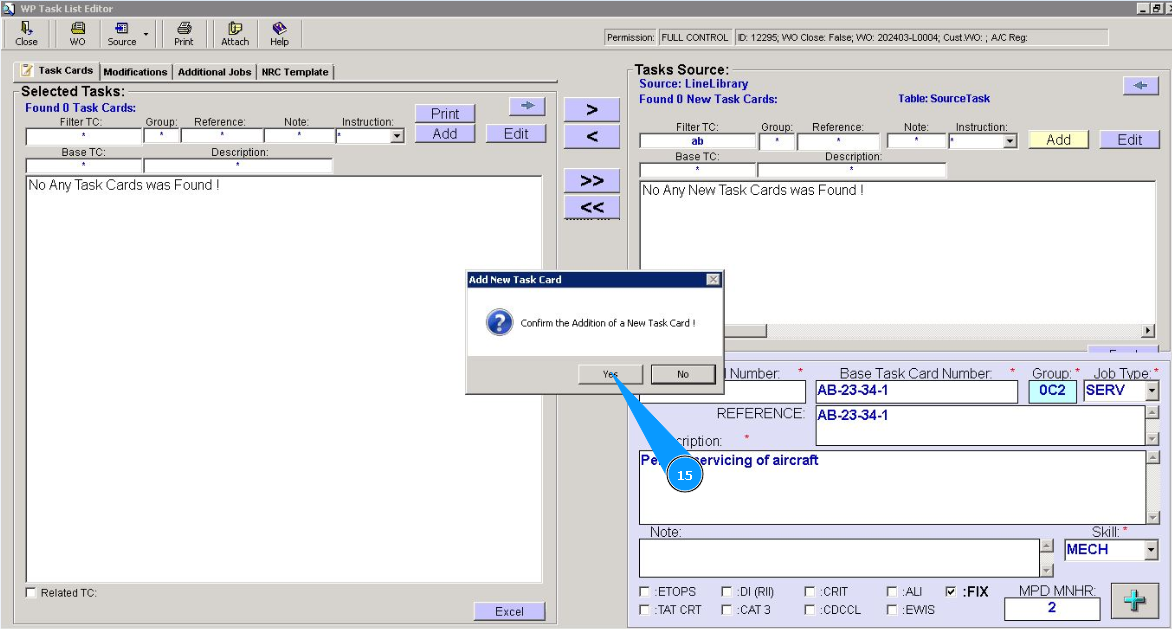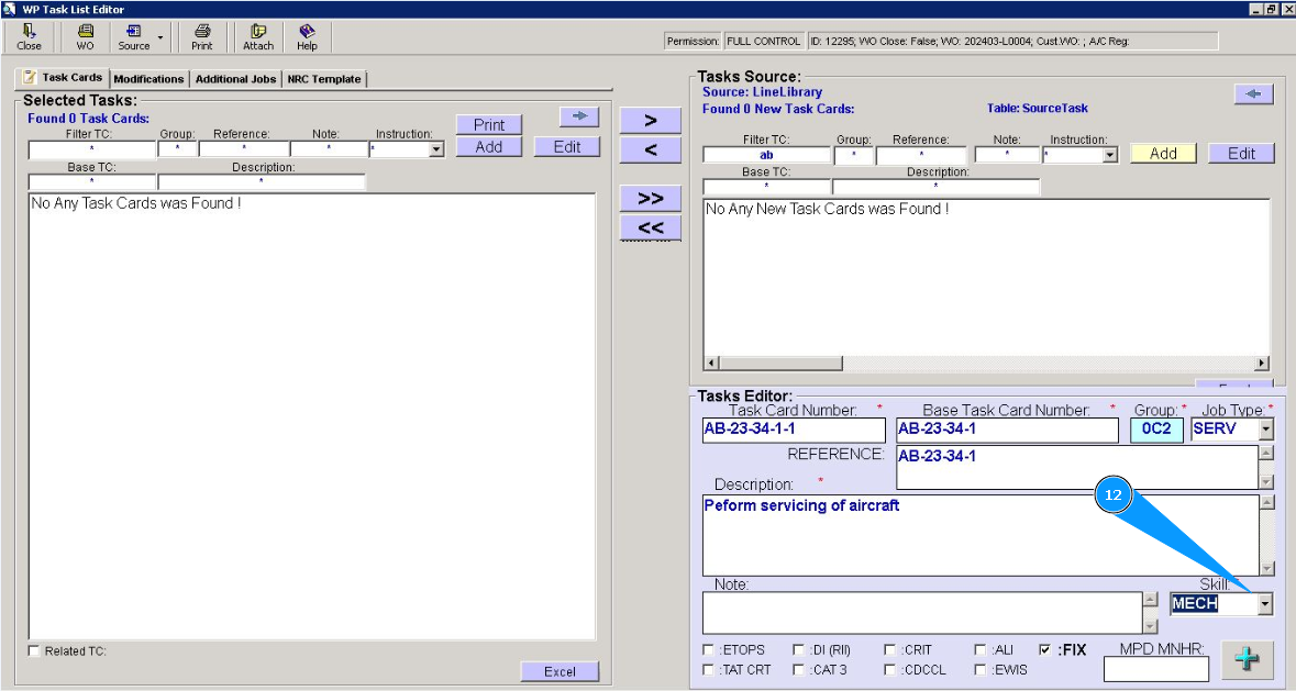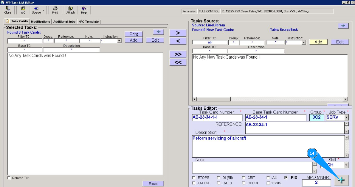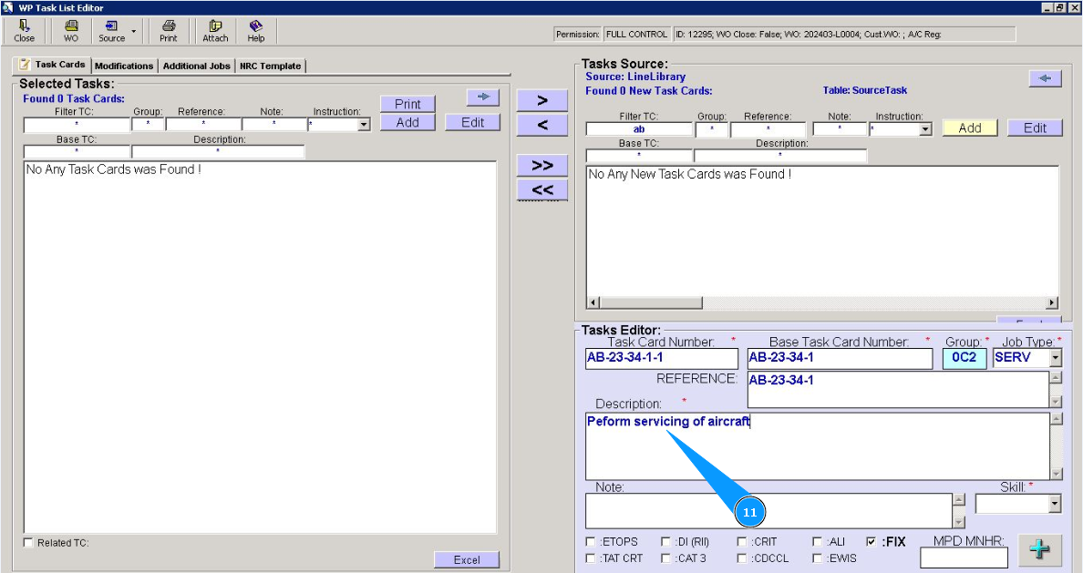 6. Enter the base task card number in the field "Base Task Card Number".