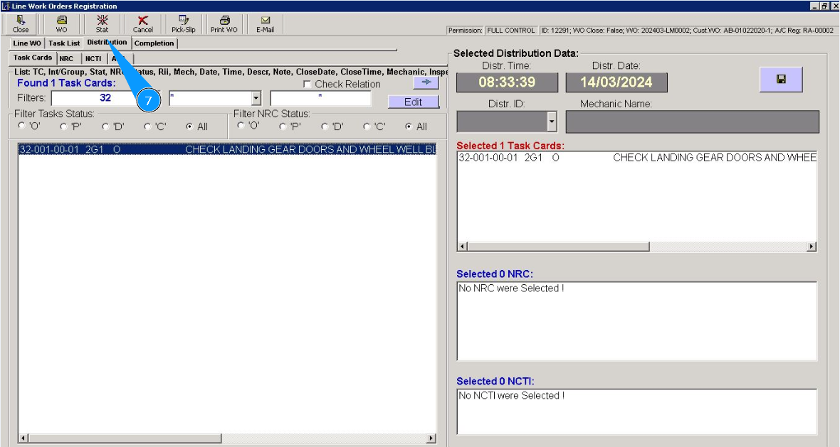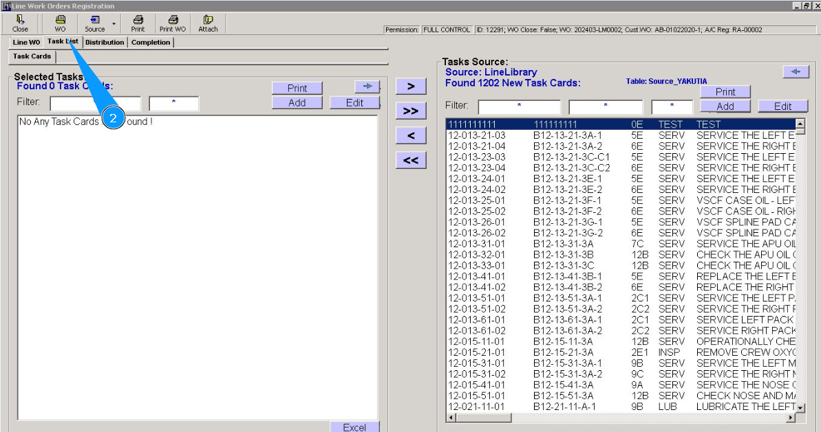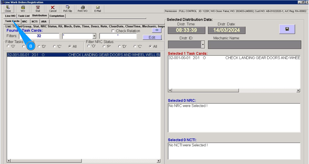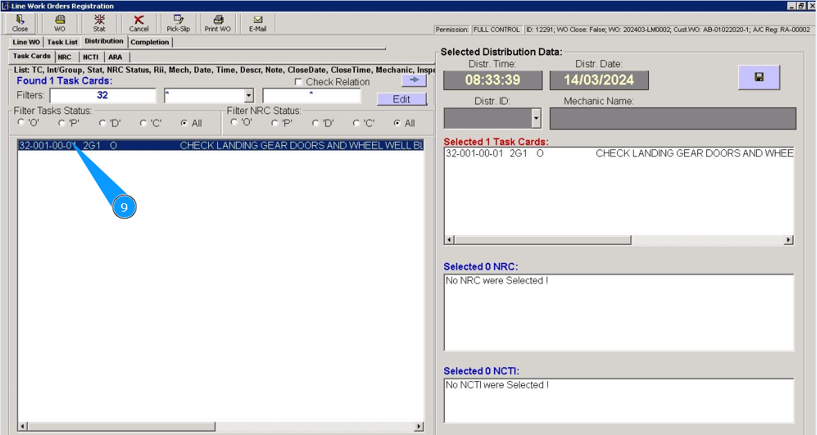 1. To assign a Task Card for performance, go to the submodule "WO".