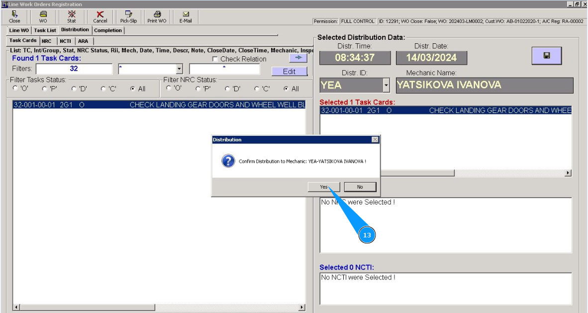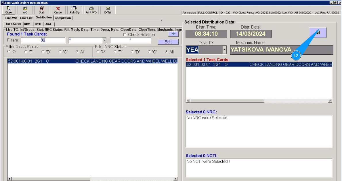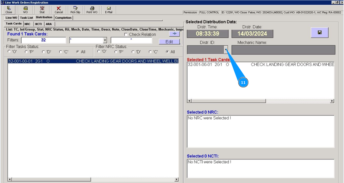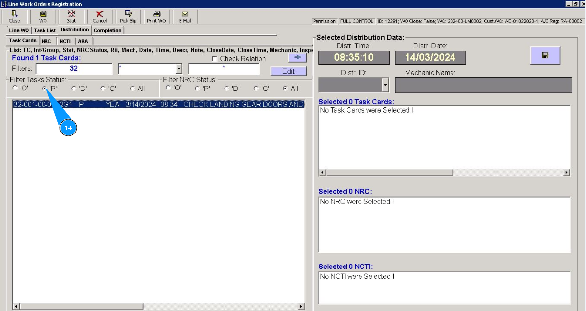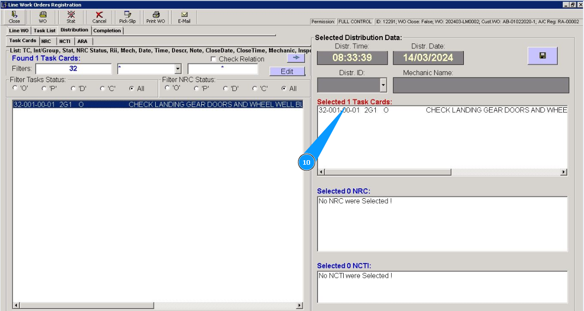 1. To assign a Task Card for performance, go to the submodule "WO".