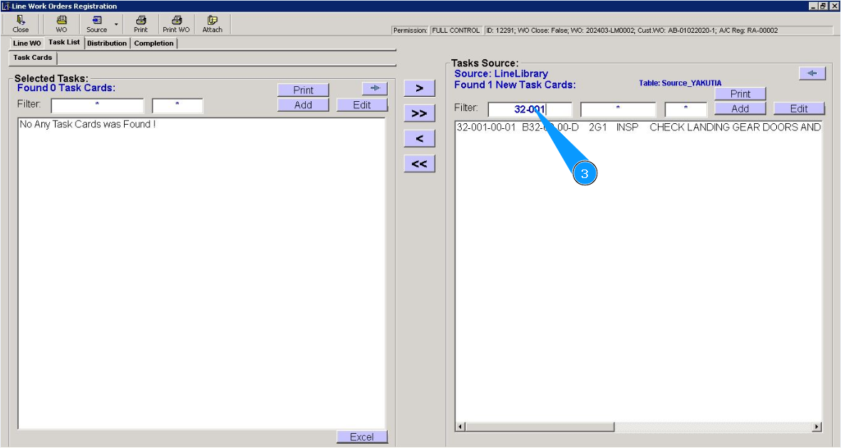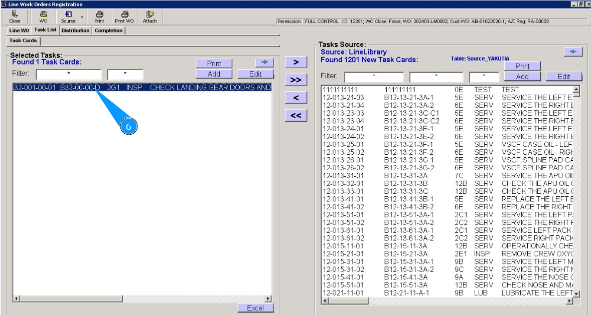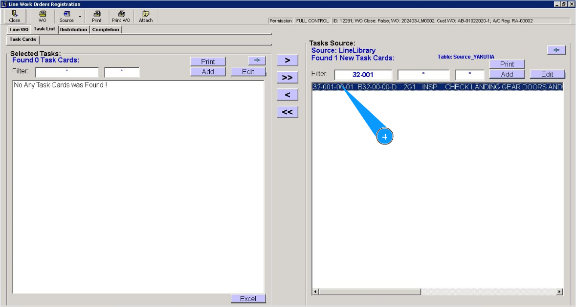 5. Click on the button with "an arrow to the left side" to move the task card to the left-screen window "Selected Tasks".