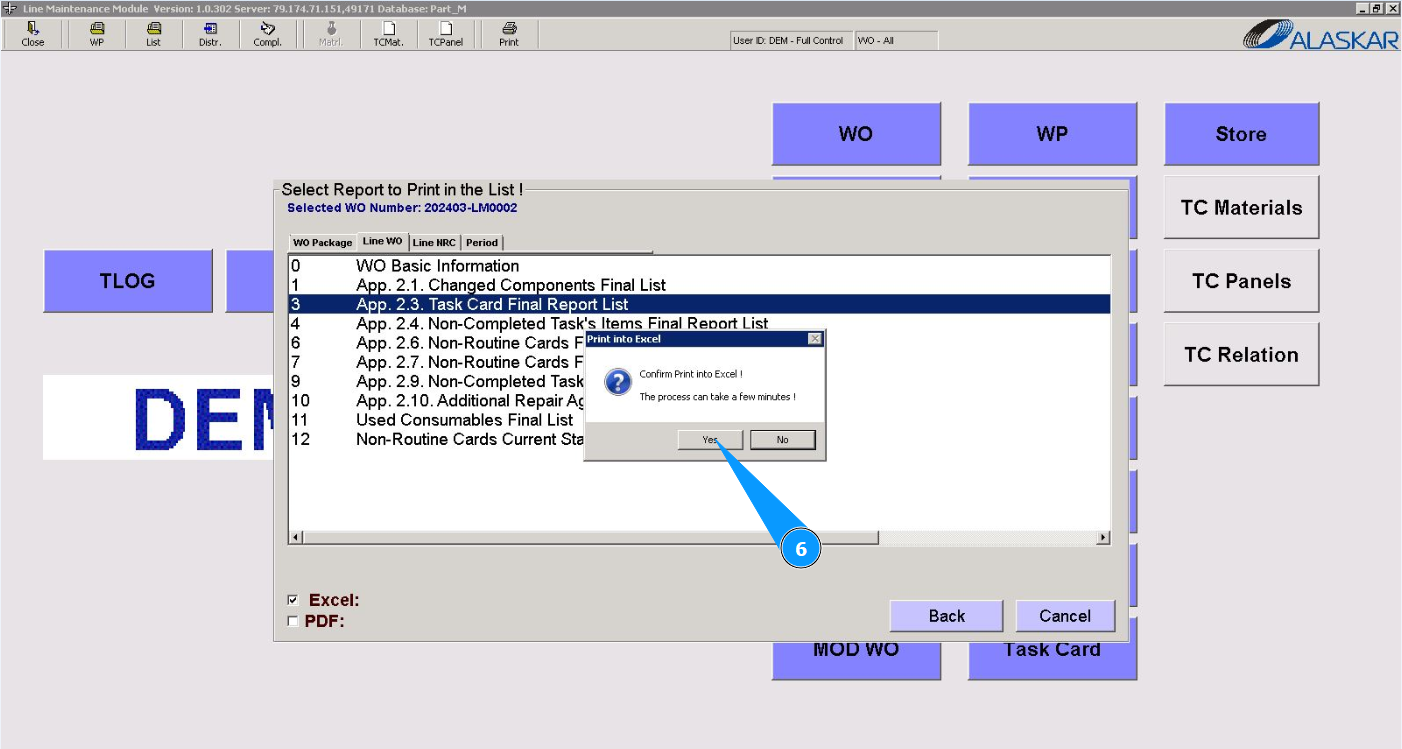 6. If necessary, click on the button "Yes", to confirm the generation of the report.