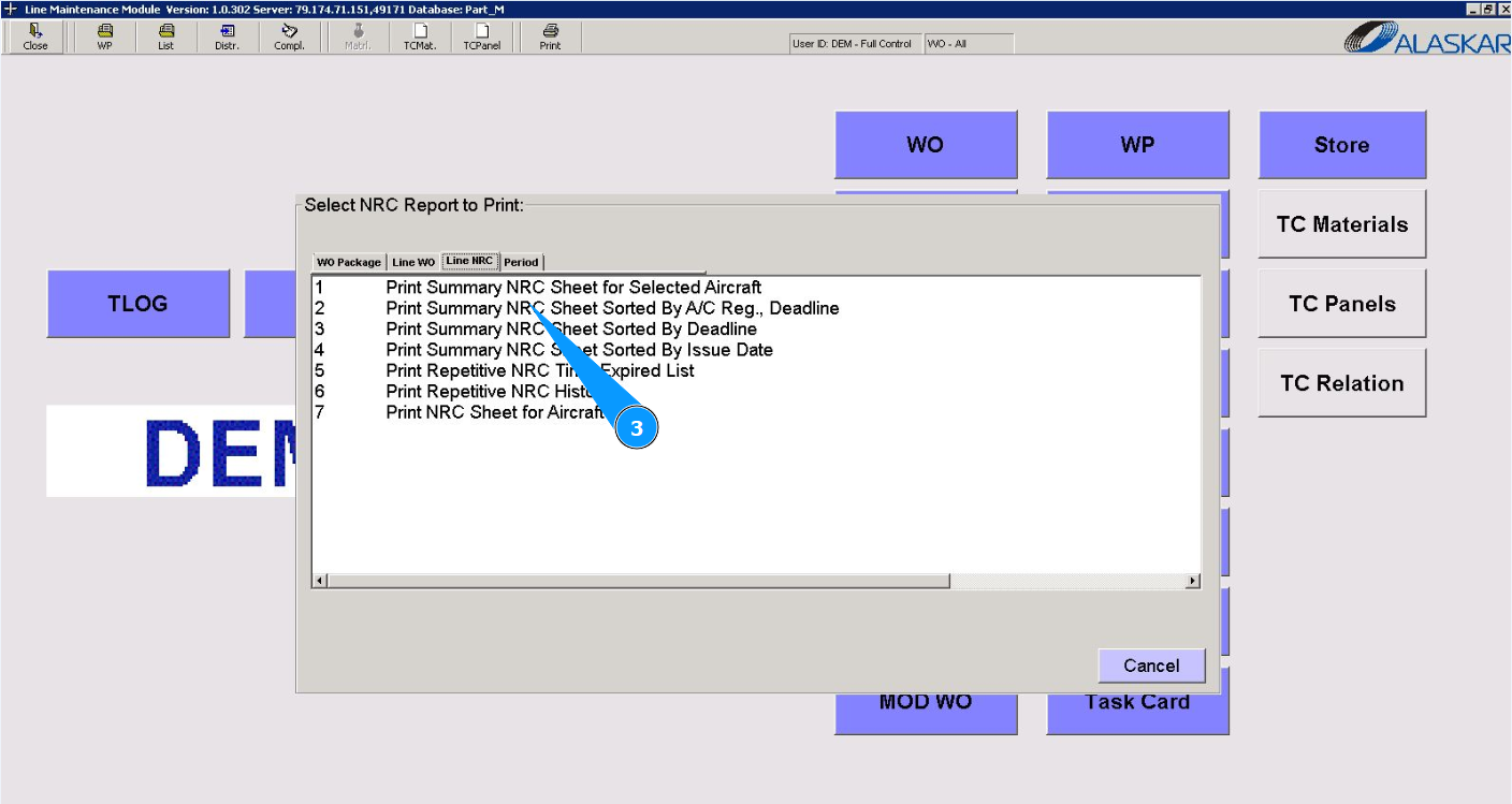 3. Select the required report check it or to print from the provided list in the window "Select NRC Report to Print" and double click on the corresponding line.