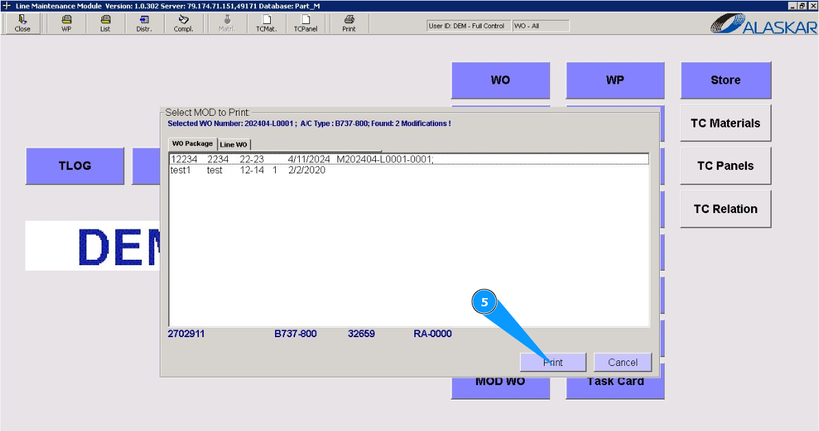 1. In order to print WP modification, go to the module "MOD WO".