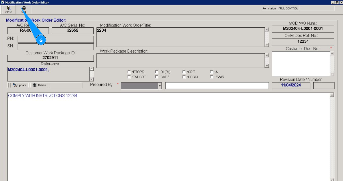6. Click on the button "Print", to generate modification form. Note: If necessary, correct the data in the modification and load it into the program, click on the button "Update".