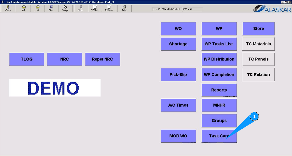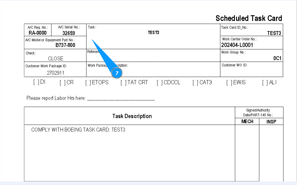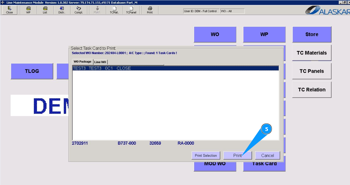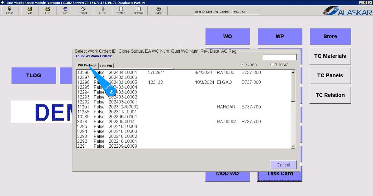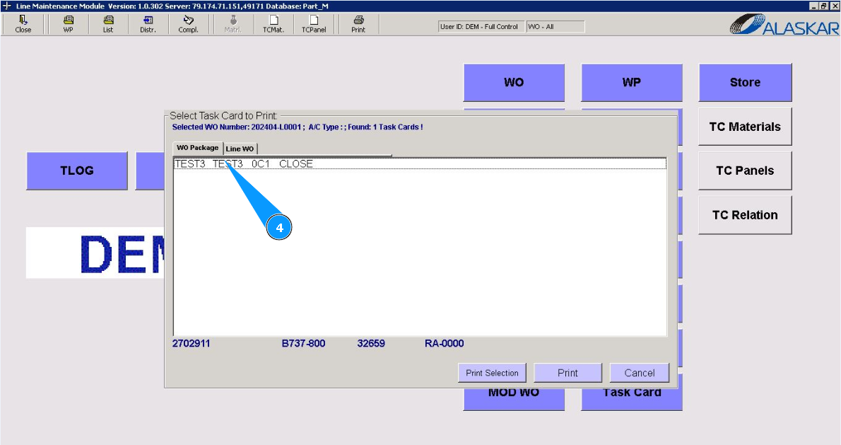 3. Select the Work package to print the task card form from the list provided and double click on the corresponding line.
