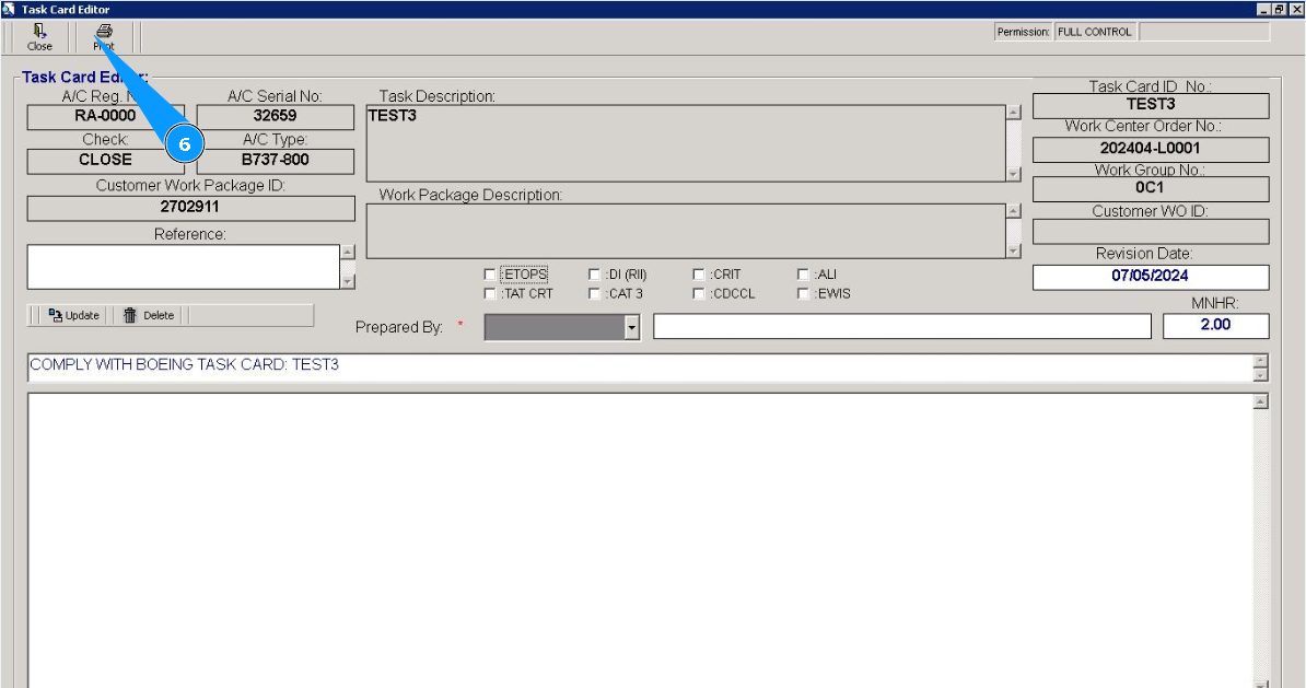 6. Click on the button "Print", to generate task card form. Note: If necessary, correct the data in the task card and load it into the program, click on the button "Update".