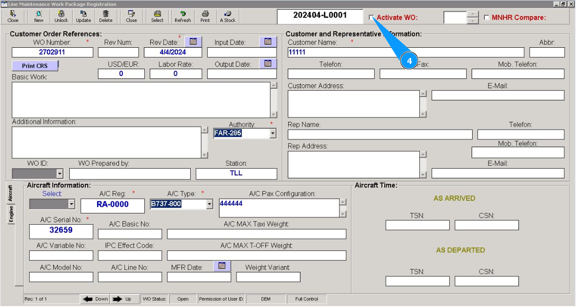 4. Tick in the box "Activate WO".
