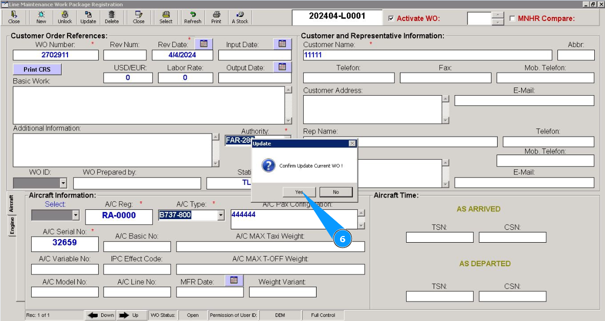 6. Click on the button "Yes", to confirm updating WP data.