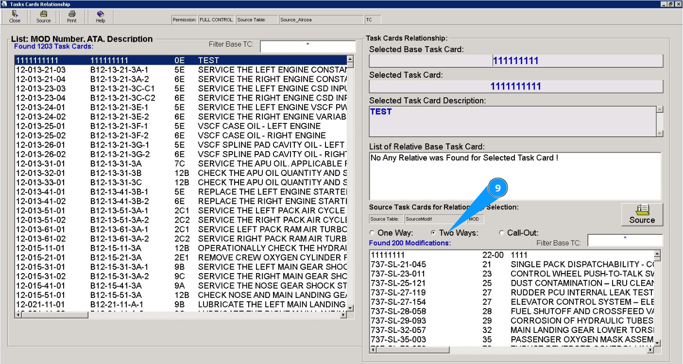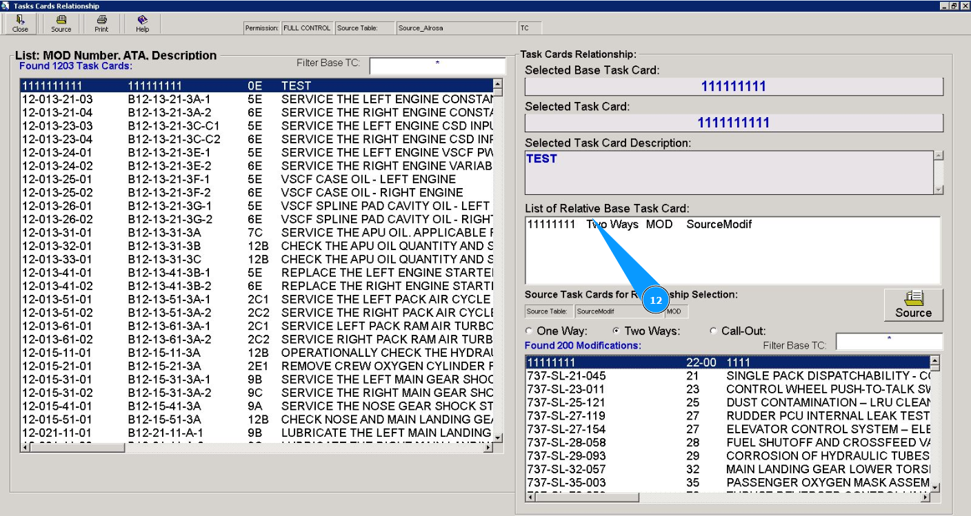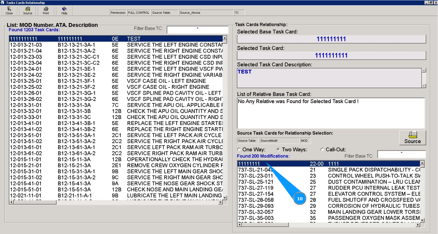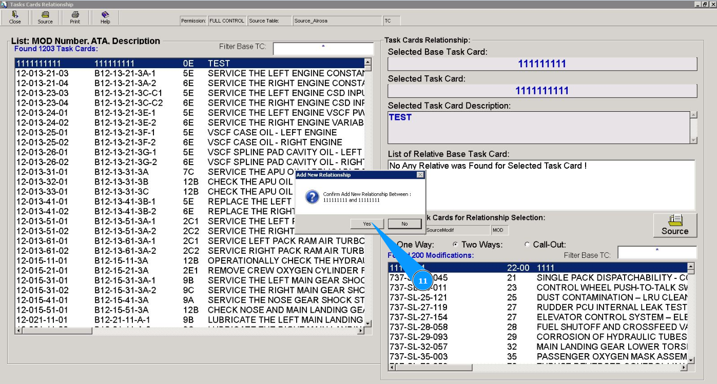 7. Select the required task to set the relationship in the fields:"Task Card", "Modification", "Add.Jobs".