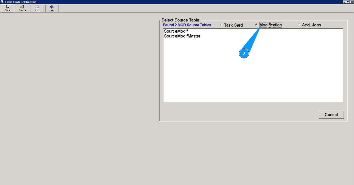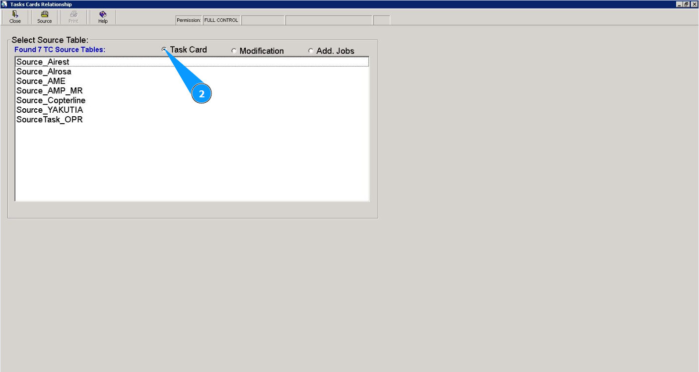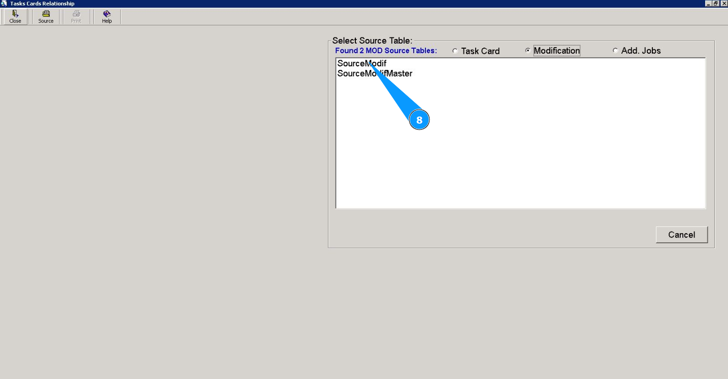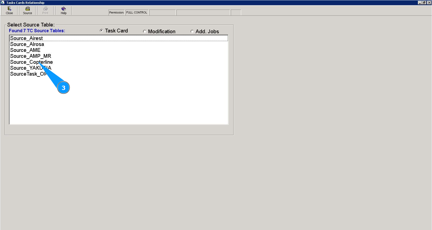 8. Select the task source in the widow "Select Source Table" and click on the corresponding line.
