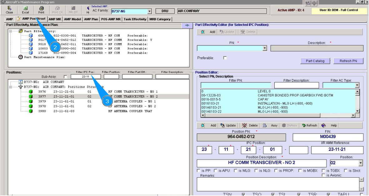 2. Then go to the tab "AMP Pos Struct". Note: If necessary, use other search filters in the fields:"Filter Position", "Filter Description".