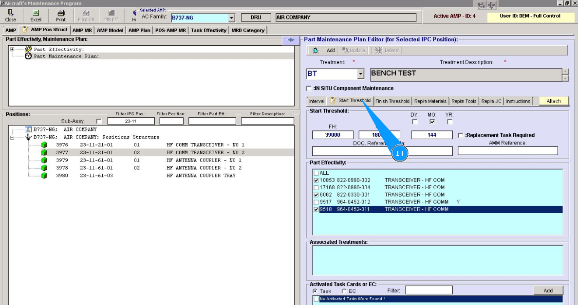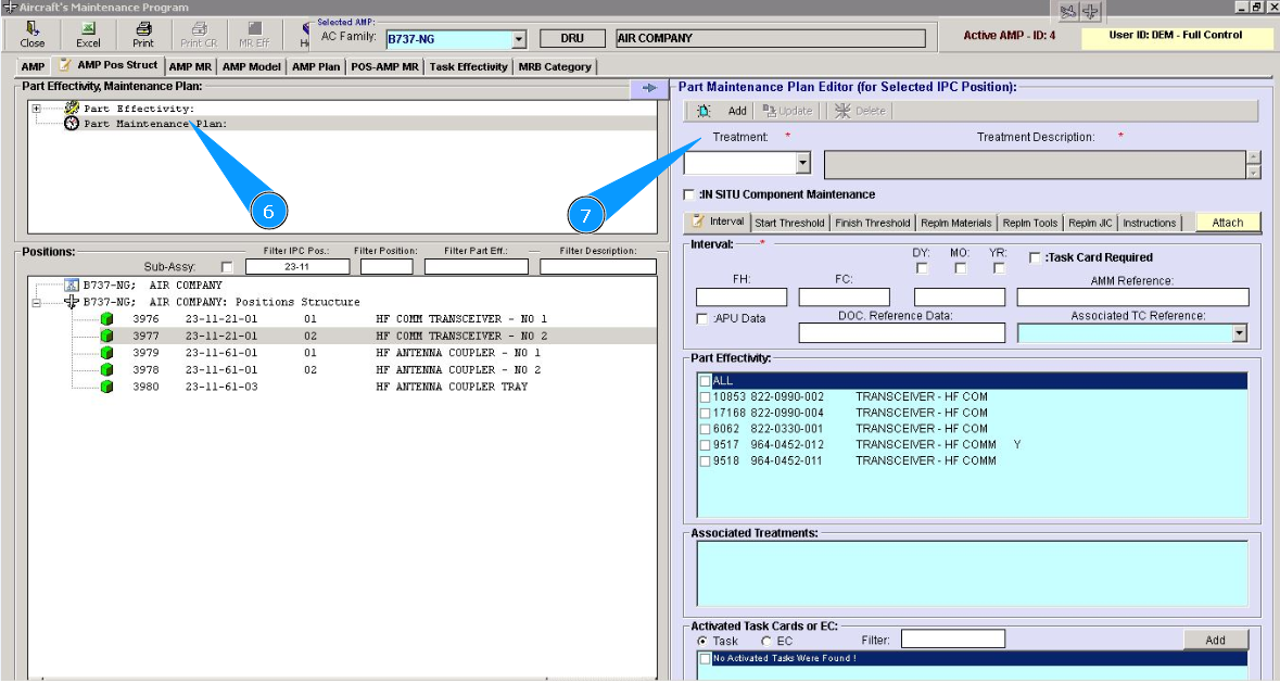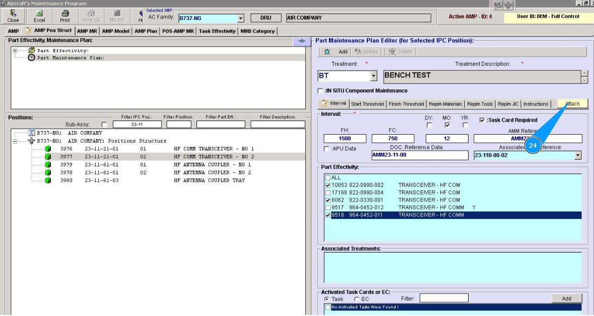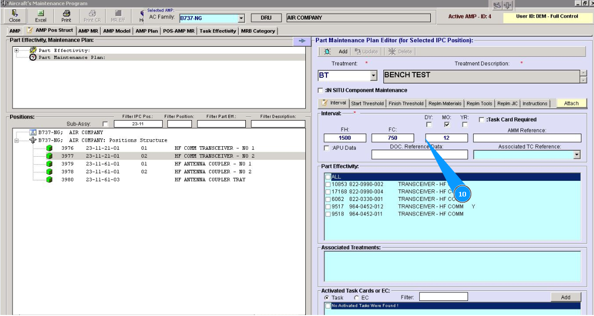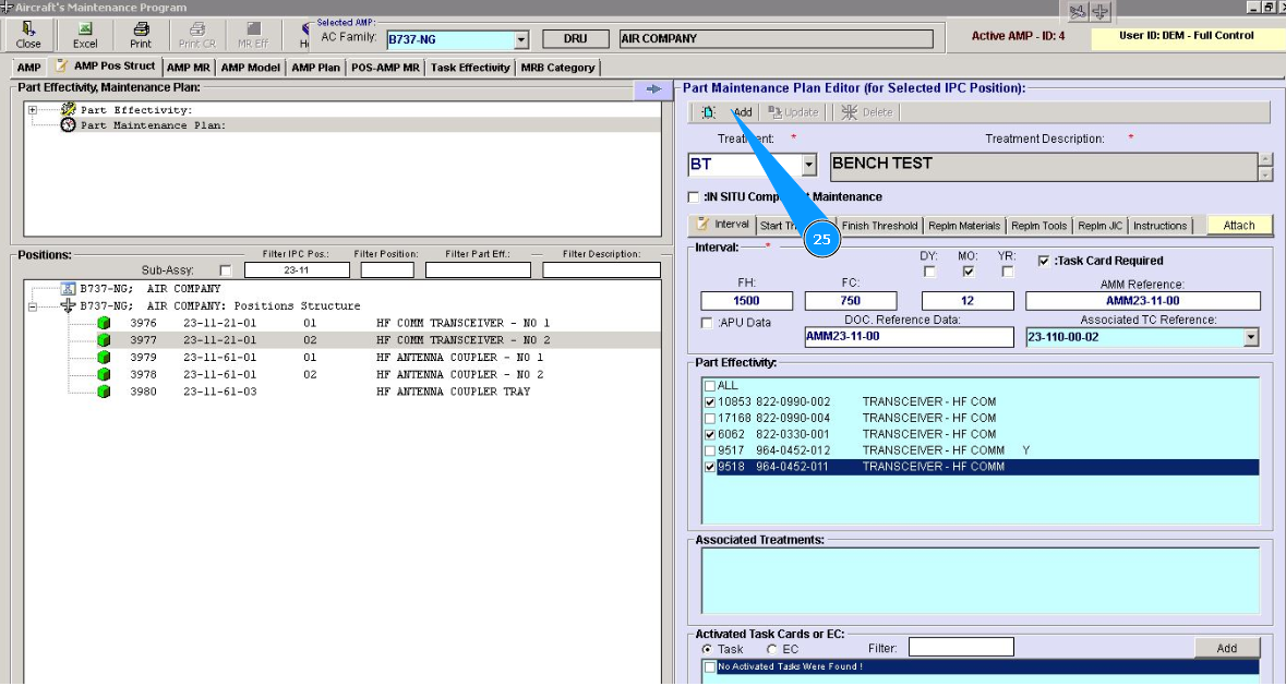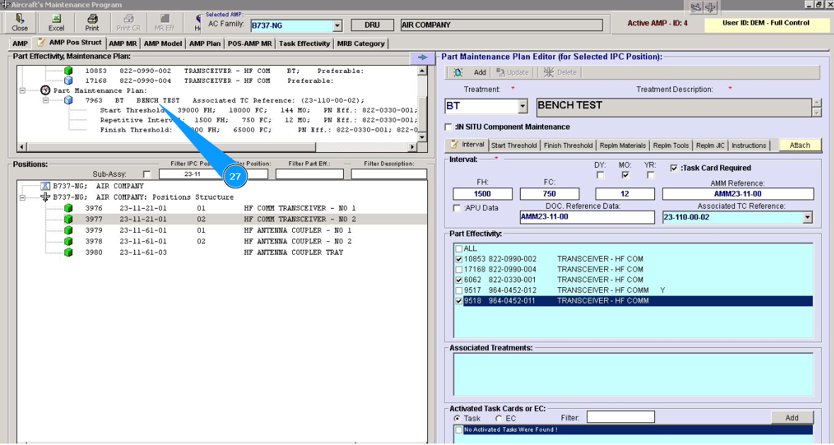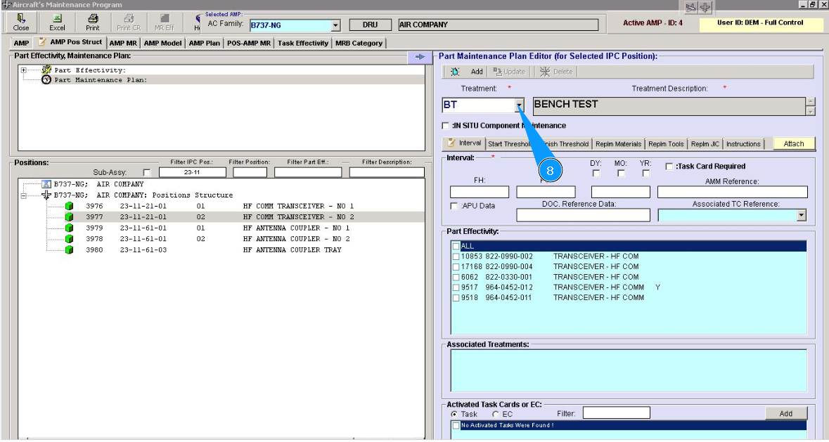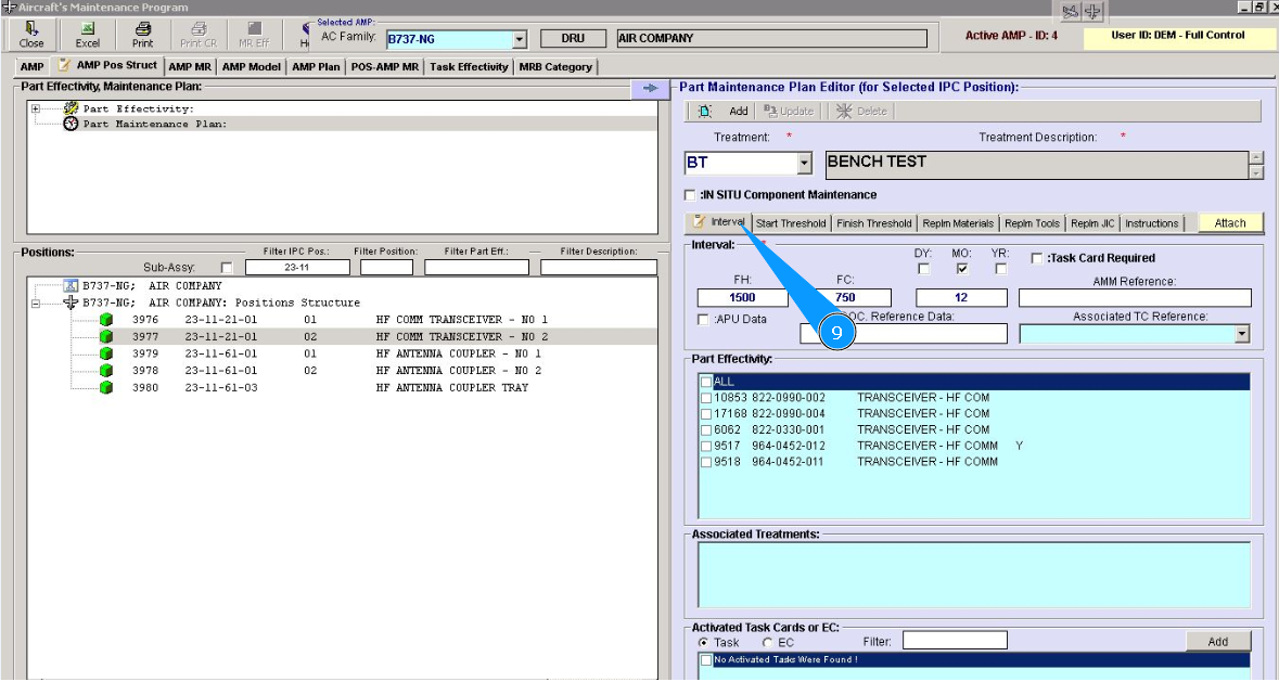 6. Click on the line "Part Maintenance Plan" in the window "Part Effectivity, Maintenance plan".