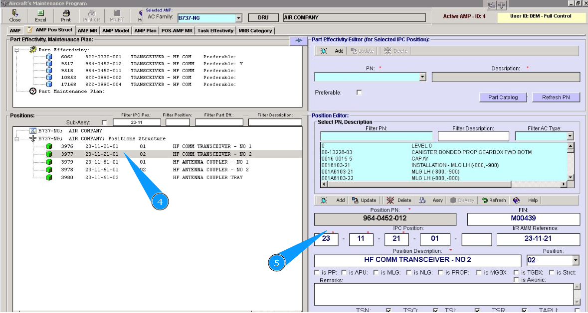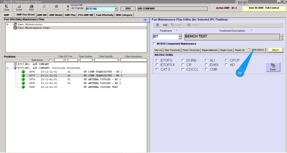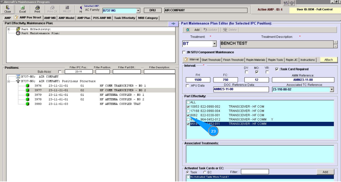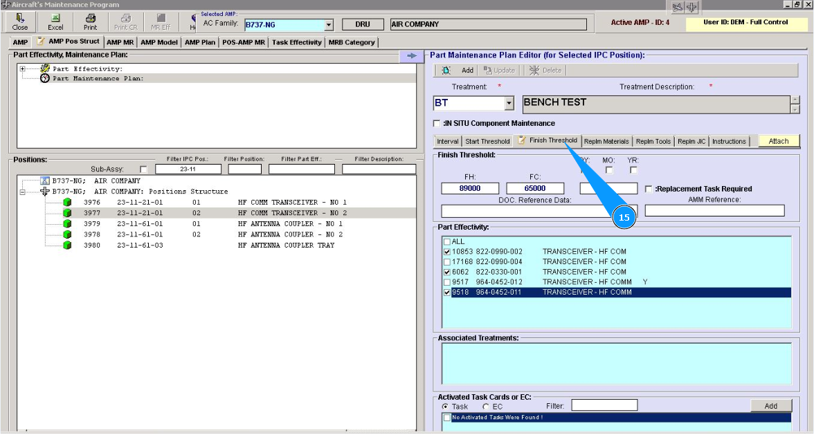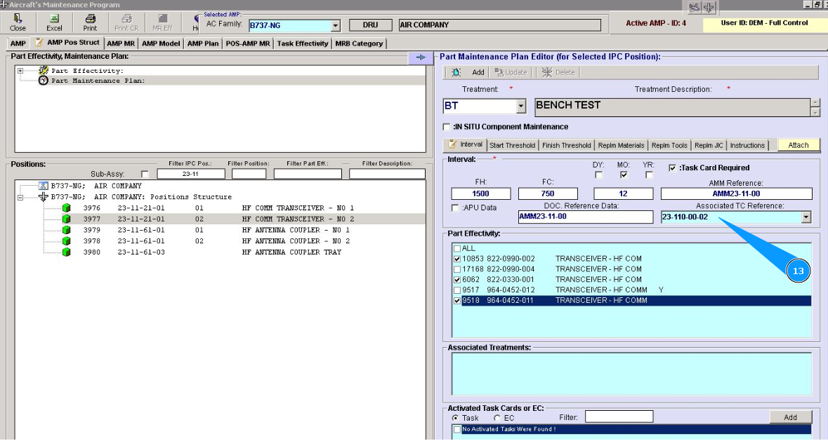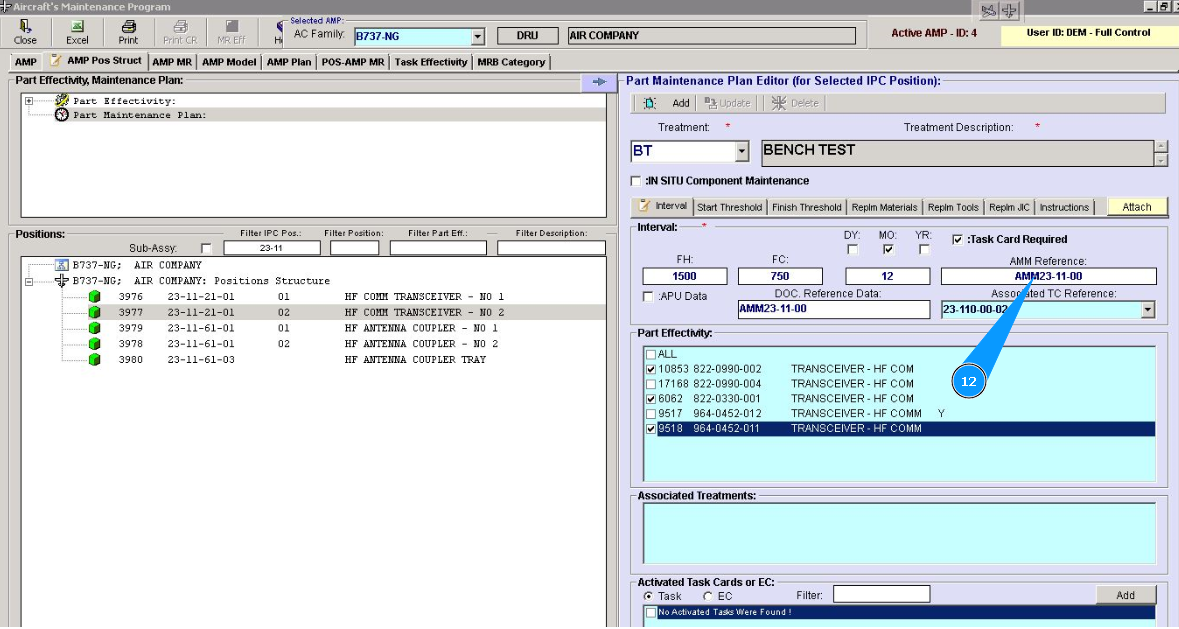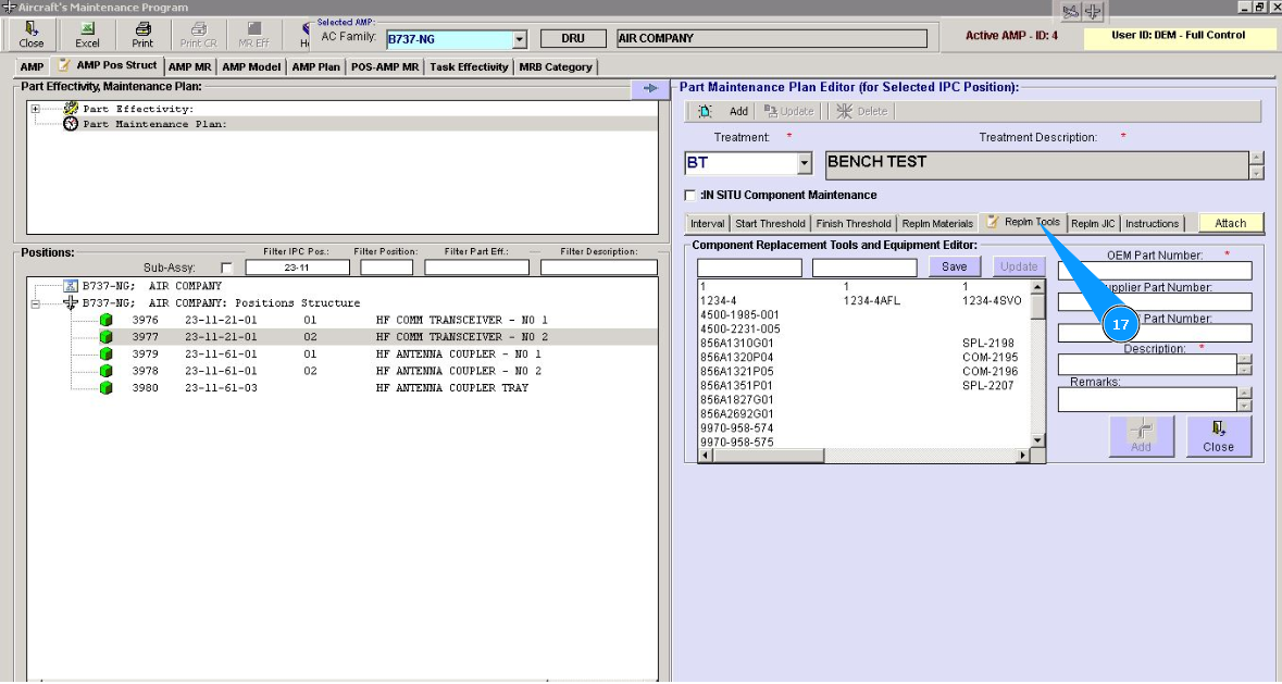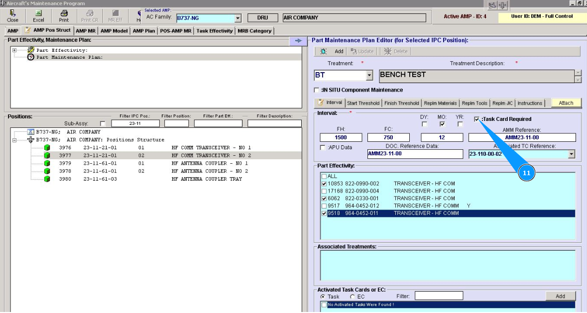 6. Click on the line "Part Maintenance Plan" in the window "Part Effectivity, Maintenance plan".