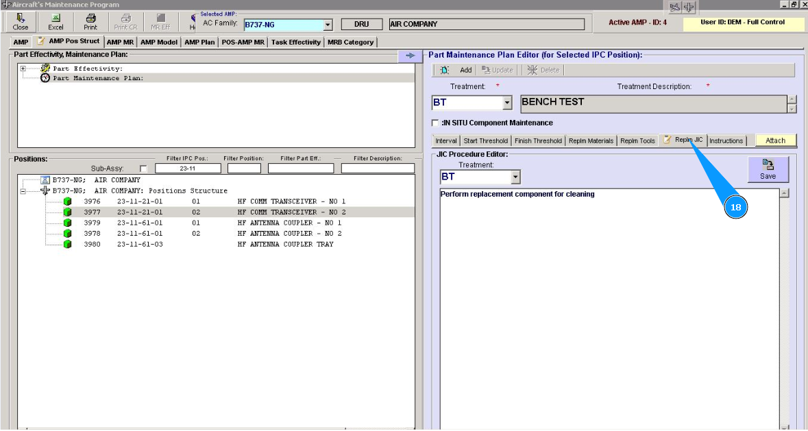 18. Enter a description of the required maintenance in the tab "Replm. JIC".