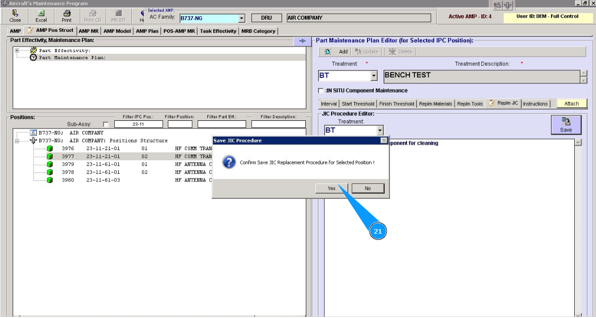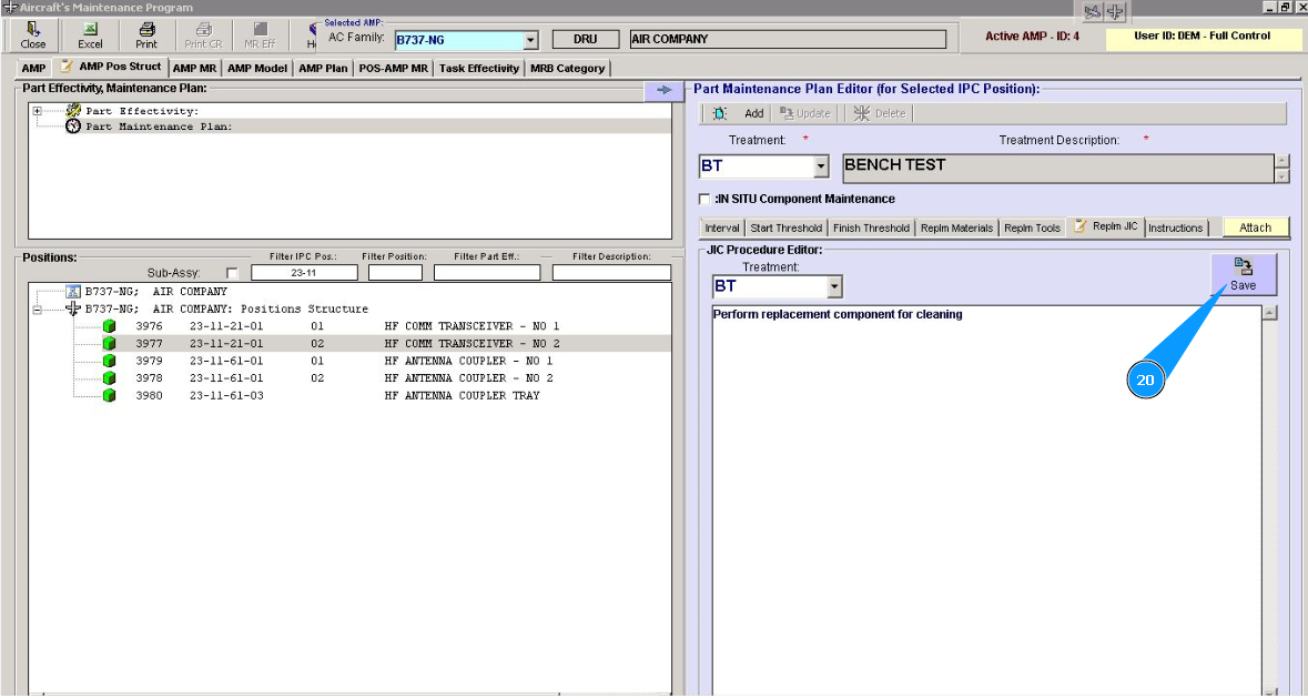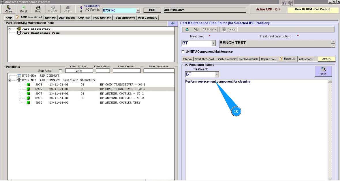 19. Enter a description of the required maintenance in the window "JIC Procedure Editor".