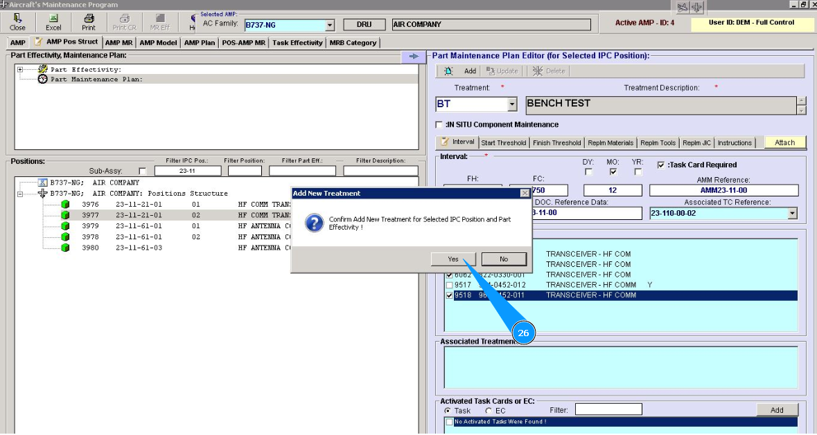 27. Check the appearance of the new record with treatment in the window "Part Effectivity, Maintenance Plan".