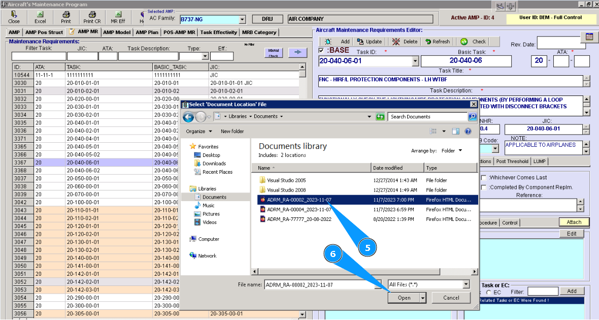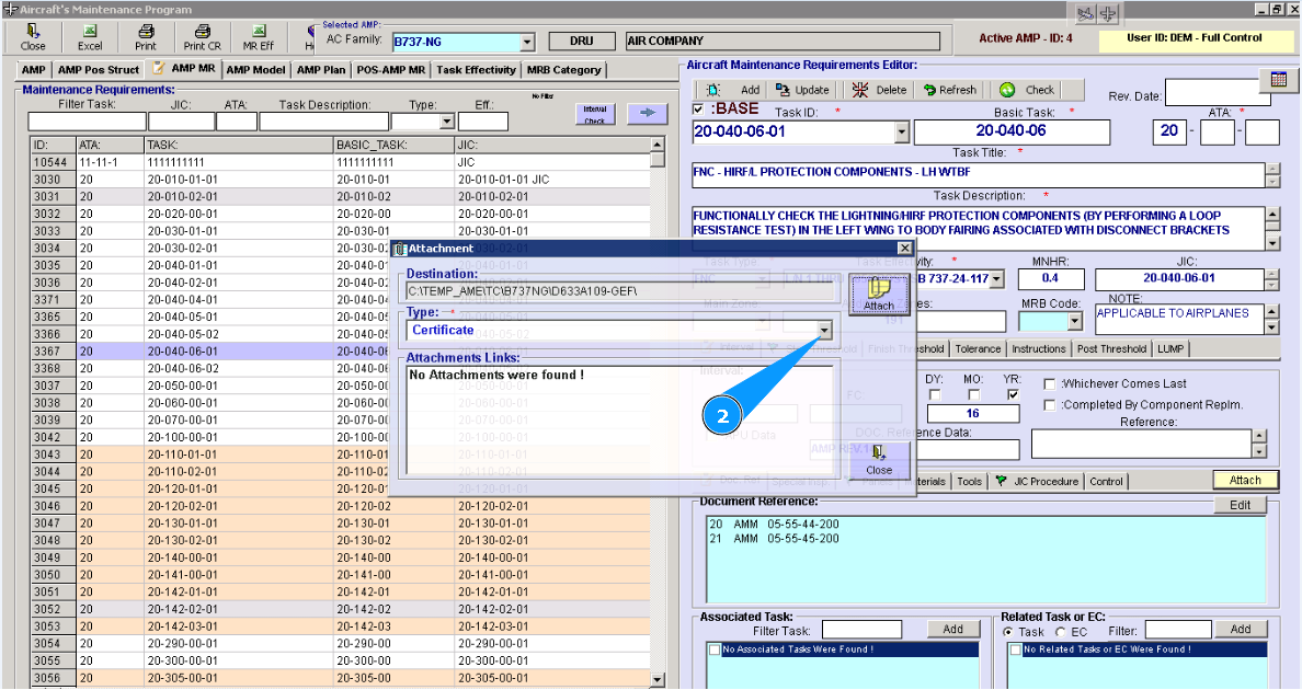 2. Select the type of documents from dropdown list: certificates, maintenance tasks, Job Cards, some reports, etc.