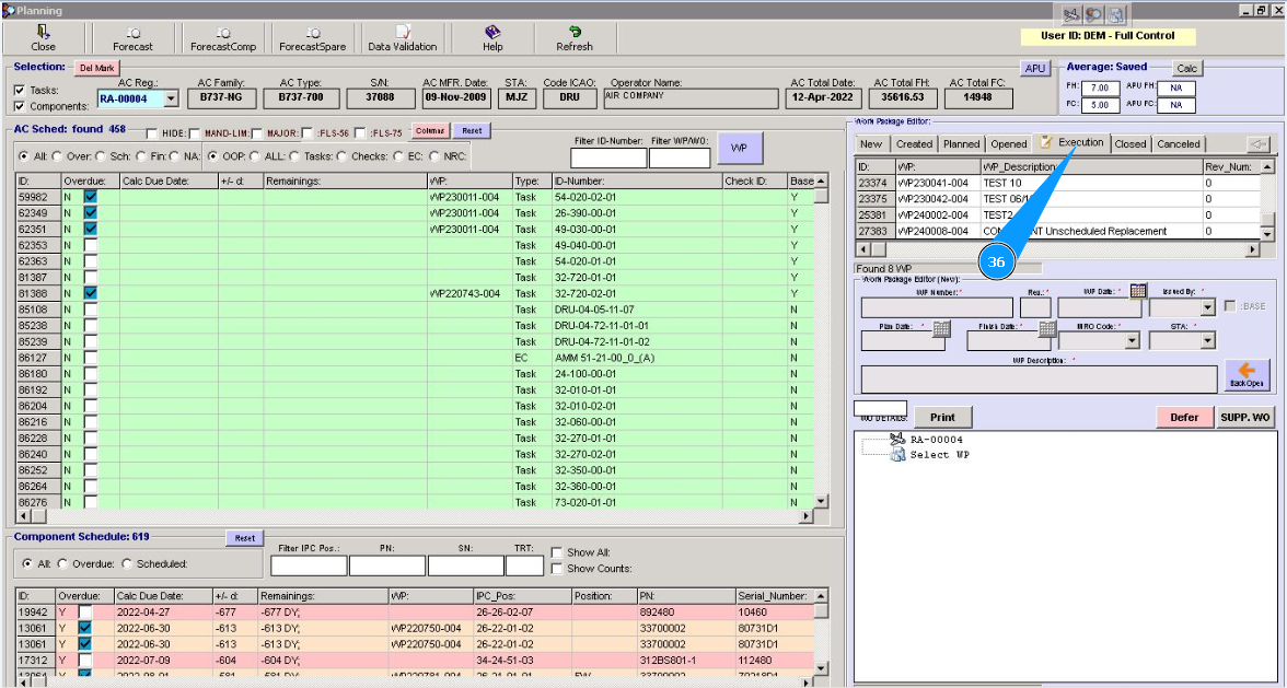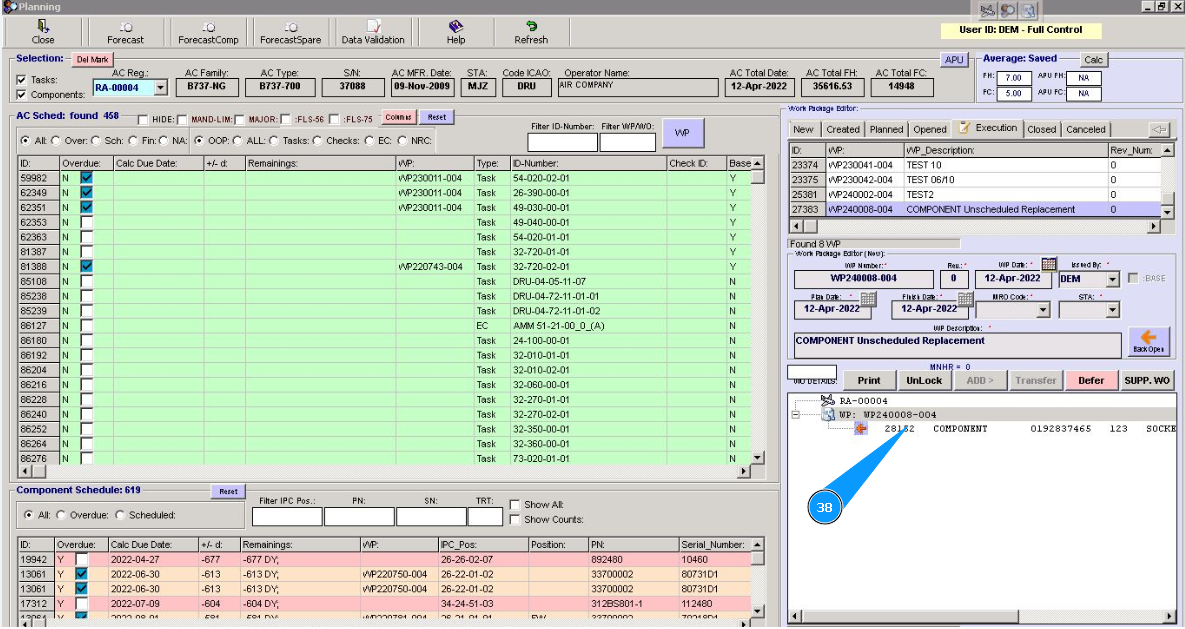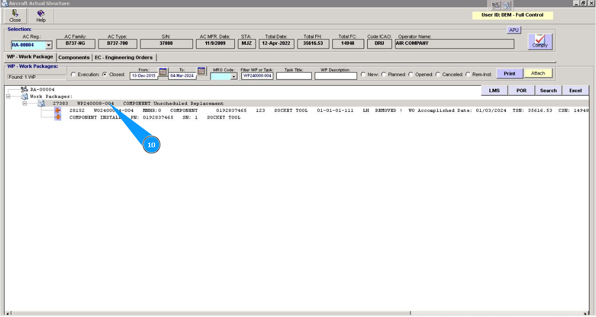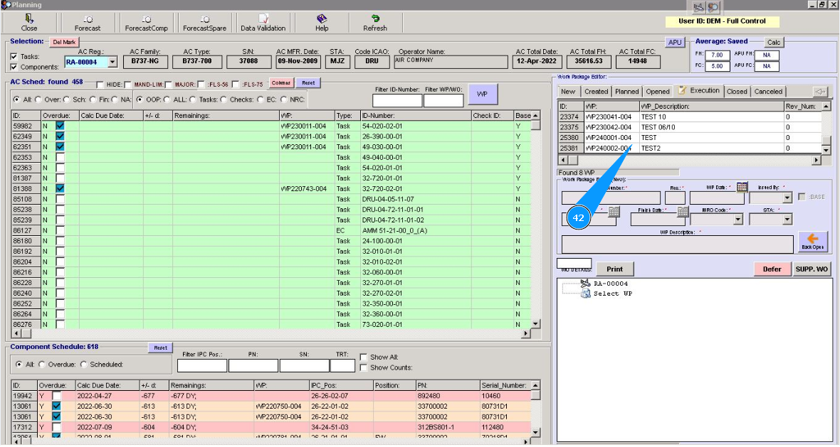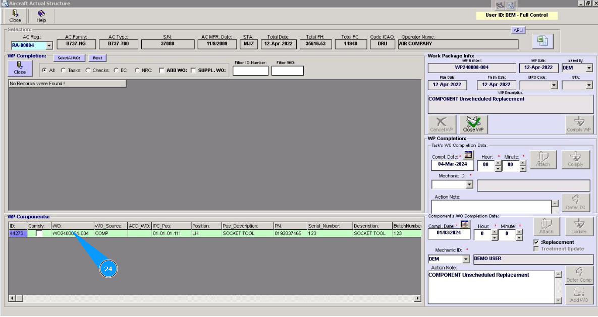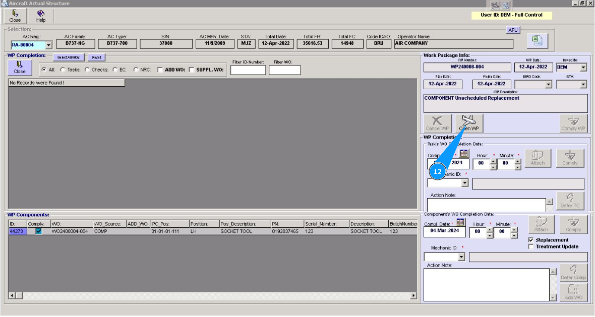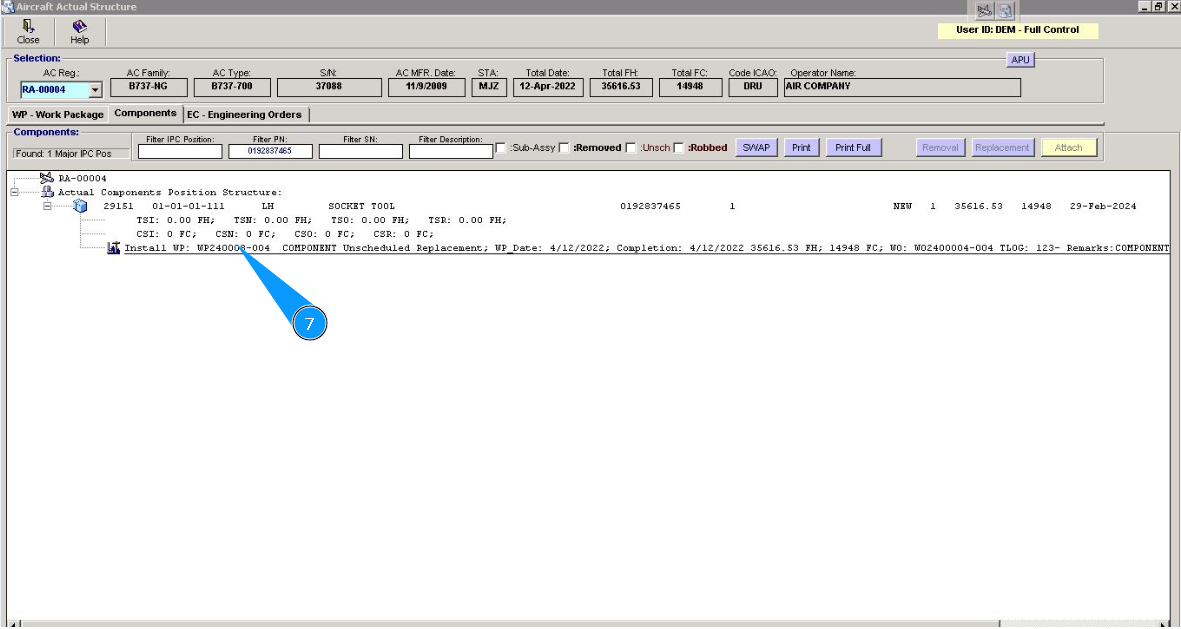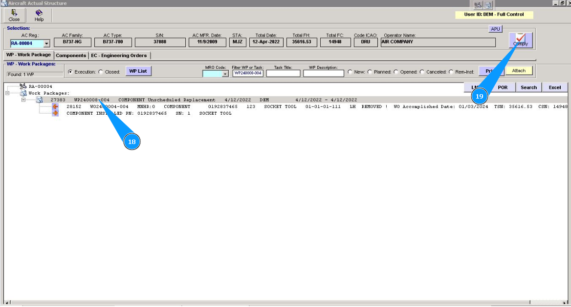 Note: Even if you did not include work to replace the component in the work package, the Alaskar creates the work package automatically. All replacements are made in the program with the creation of virtual WP object.