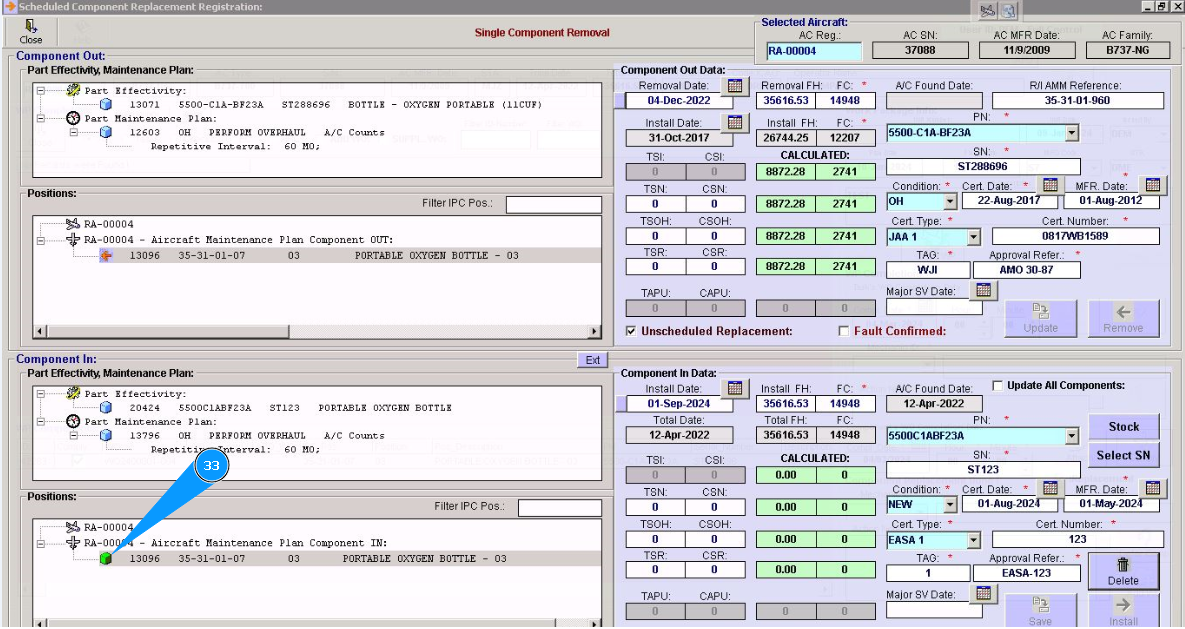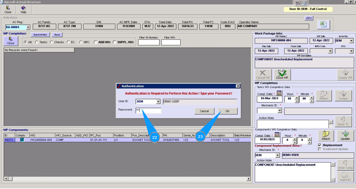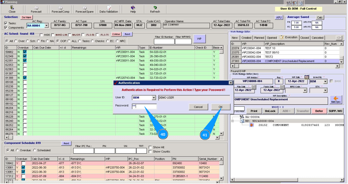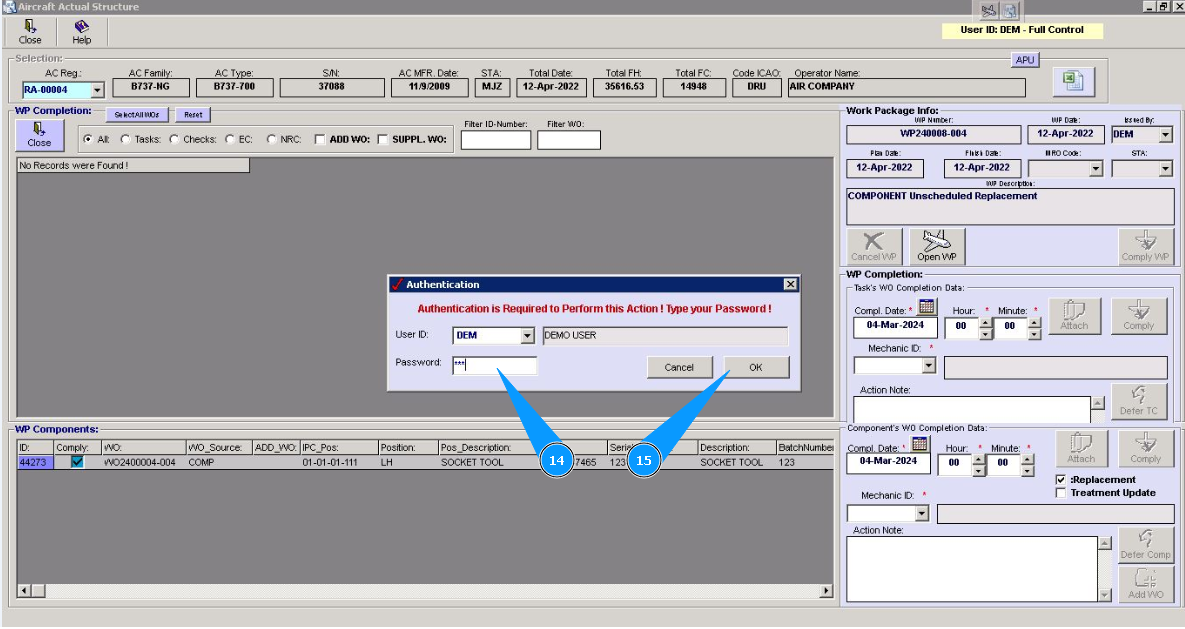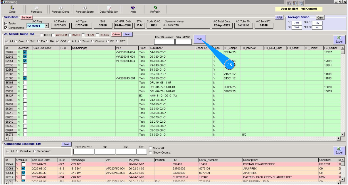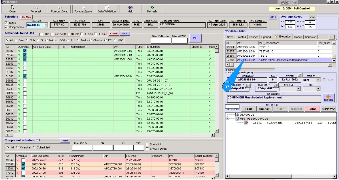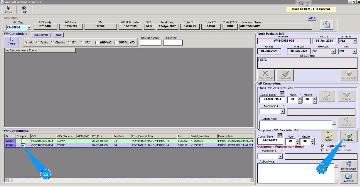 Note: Even if you did not include work to replace the component in the work package, the Alaskar creates the work package automatically. All replacements are made in the program with the creation of virtual WP object.