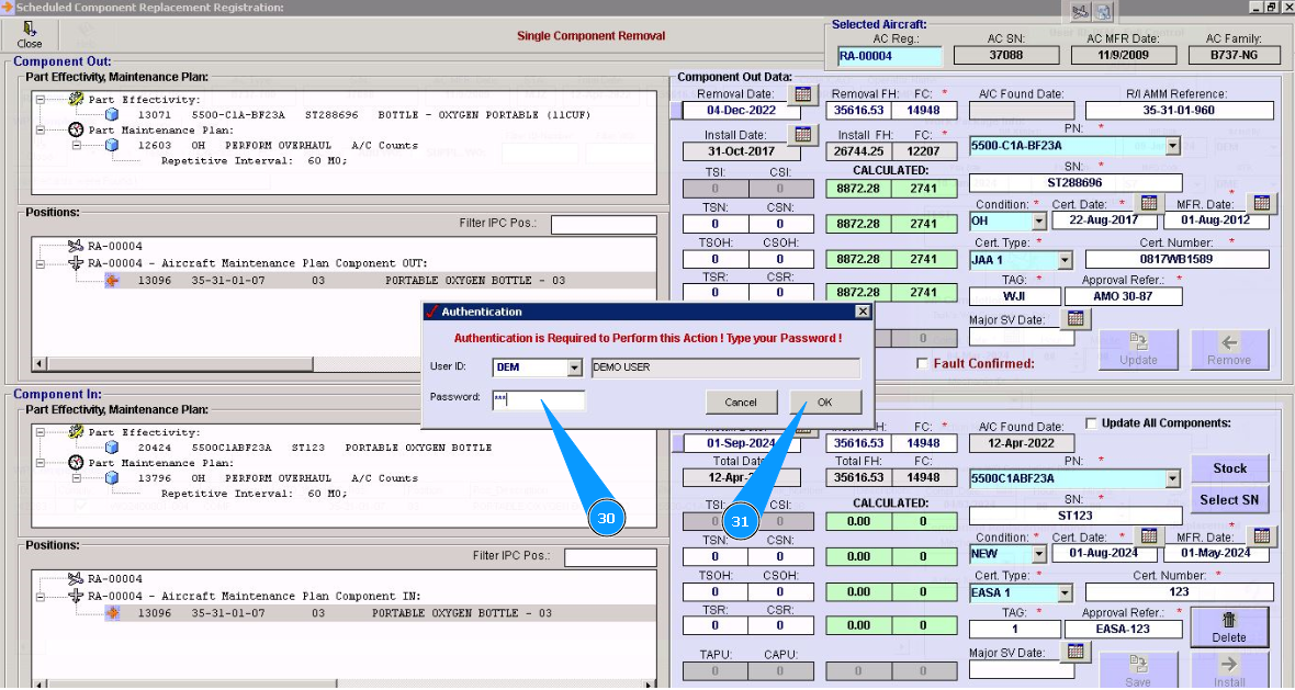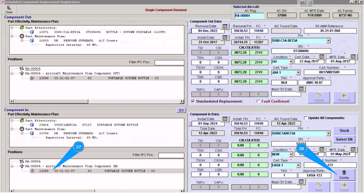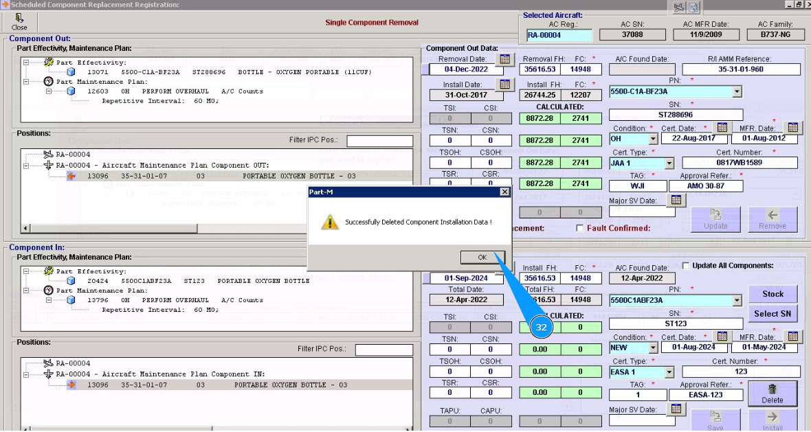 31. Click on the button "Ok", to save deletion component data.