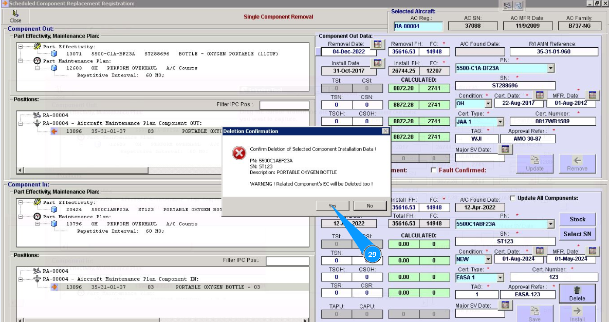 29. Click on the button "Yes", to confirm deletion of data of installed component.