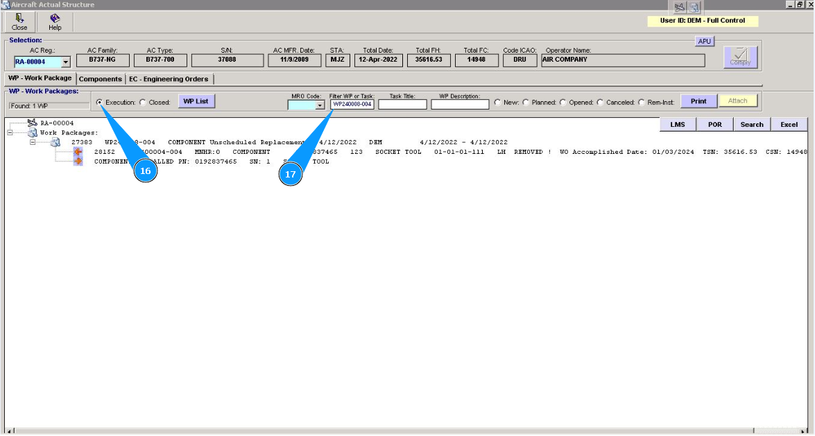 16. WP is transferred to "Execution" condition and ready to be revised. For further working, set the corresponding filter, click in the window "Execution".