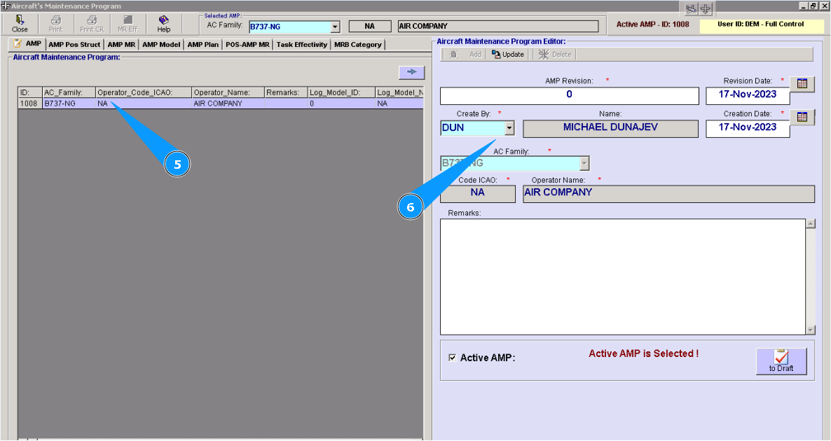 6. Check that editor "Aircraft Maintenance Program Editor" is automatically filled in by data. If necessary, you can change it.