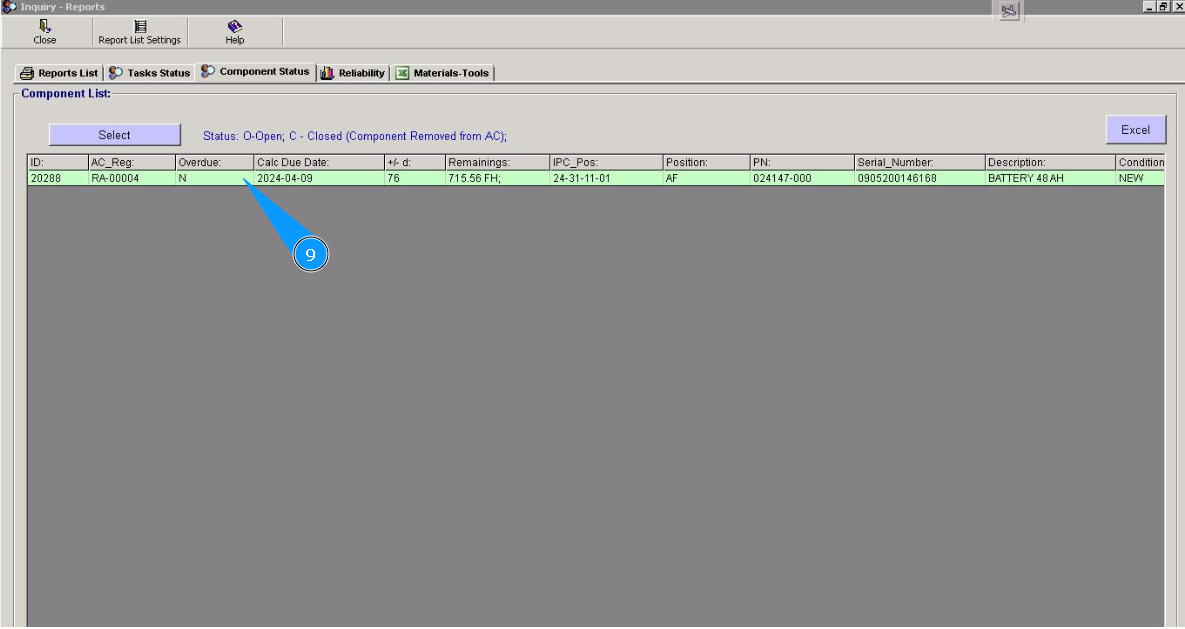 9. Information about the current status and history of components is available in the opened window "Component List".