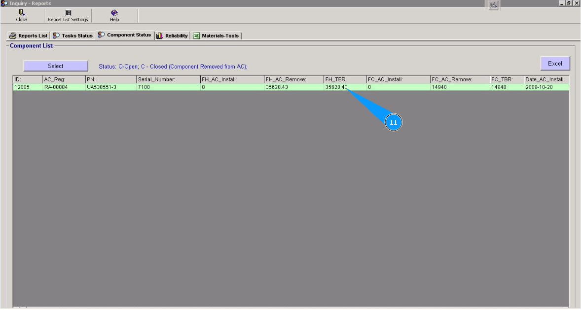 11. Information about FH/TBR and FC/TBR of components is available in the opened window "Tasks List" in the columns "FH TBR" and "FC TBR".